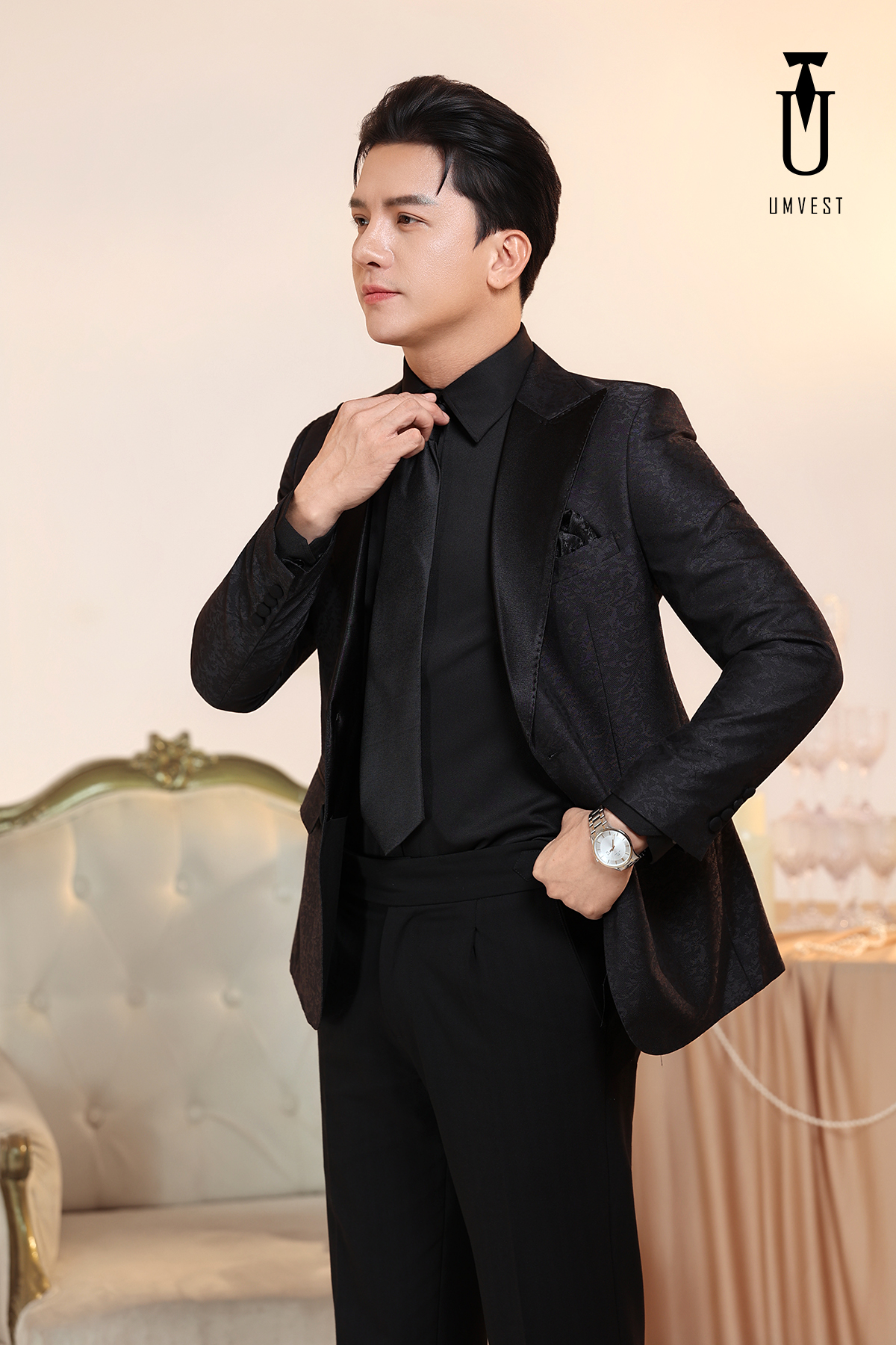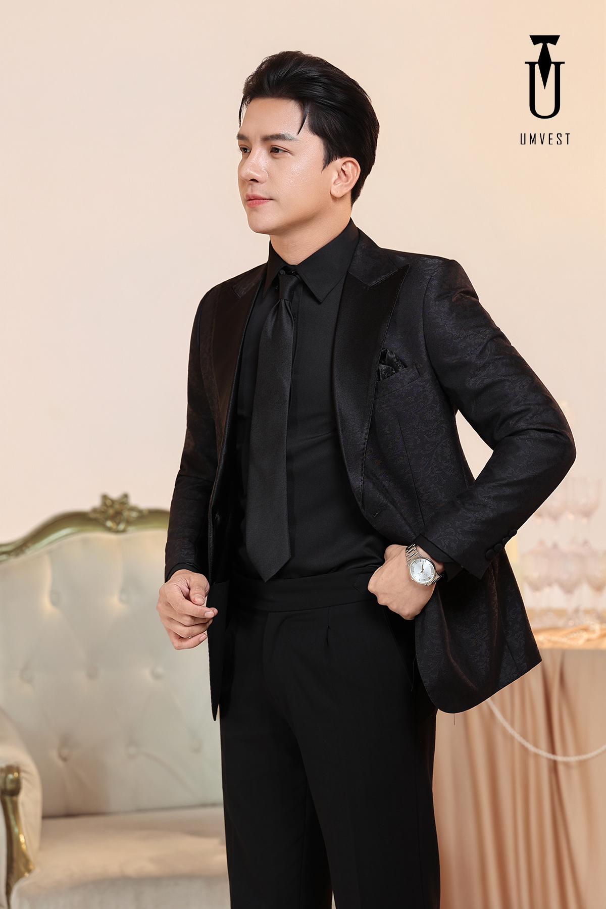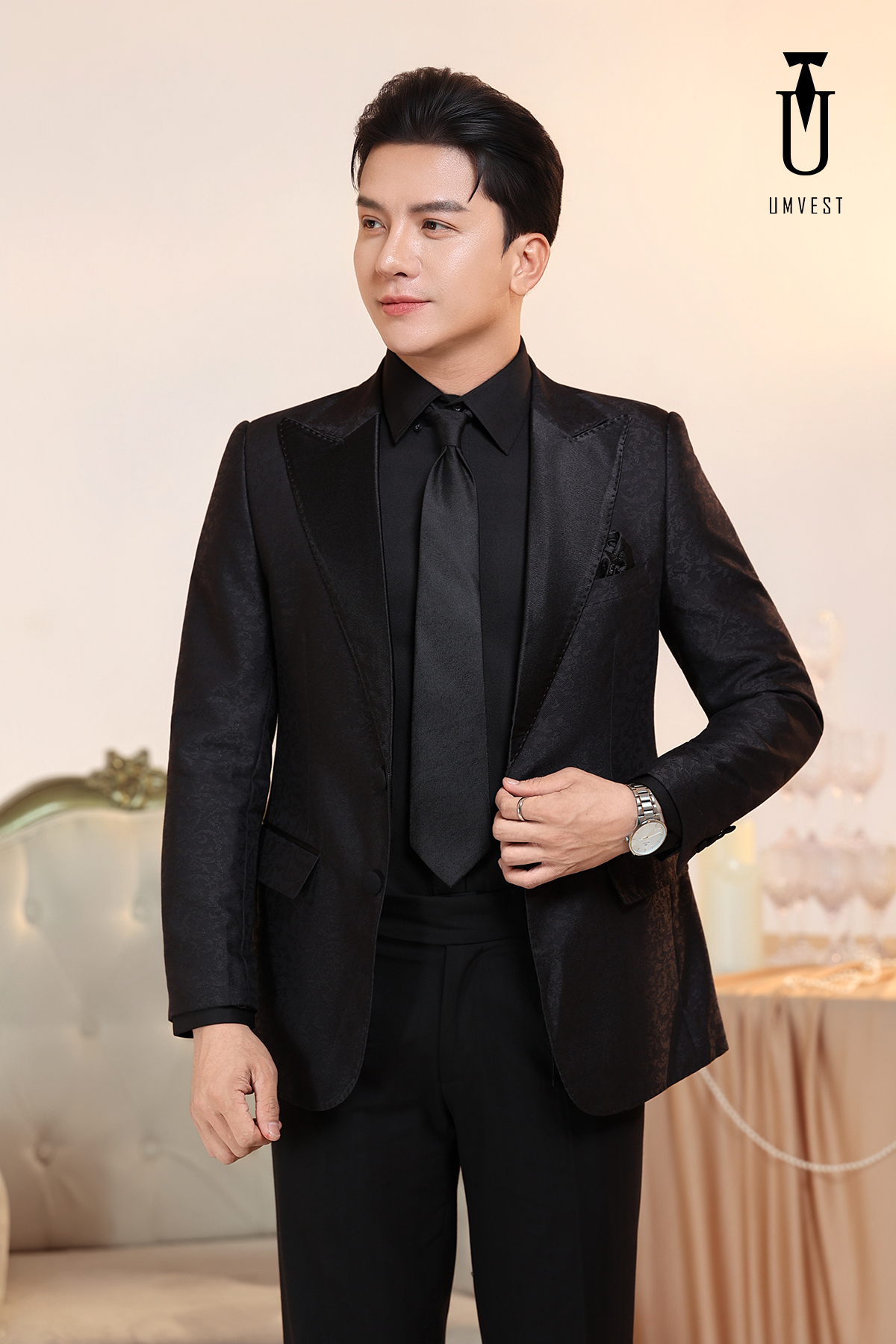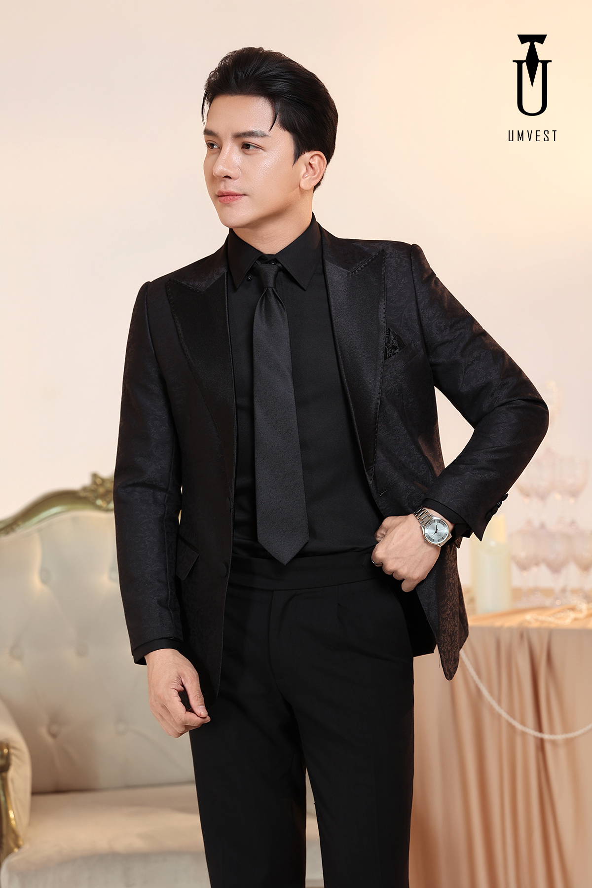 Thuê Tuxedo Đen Gấm Sơ Mi Đen