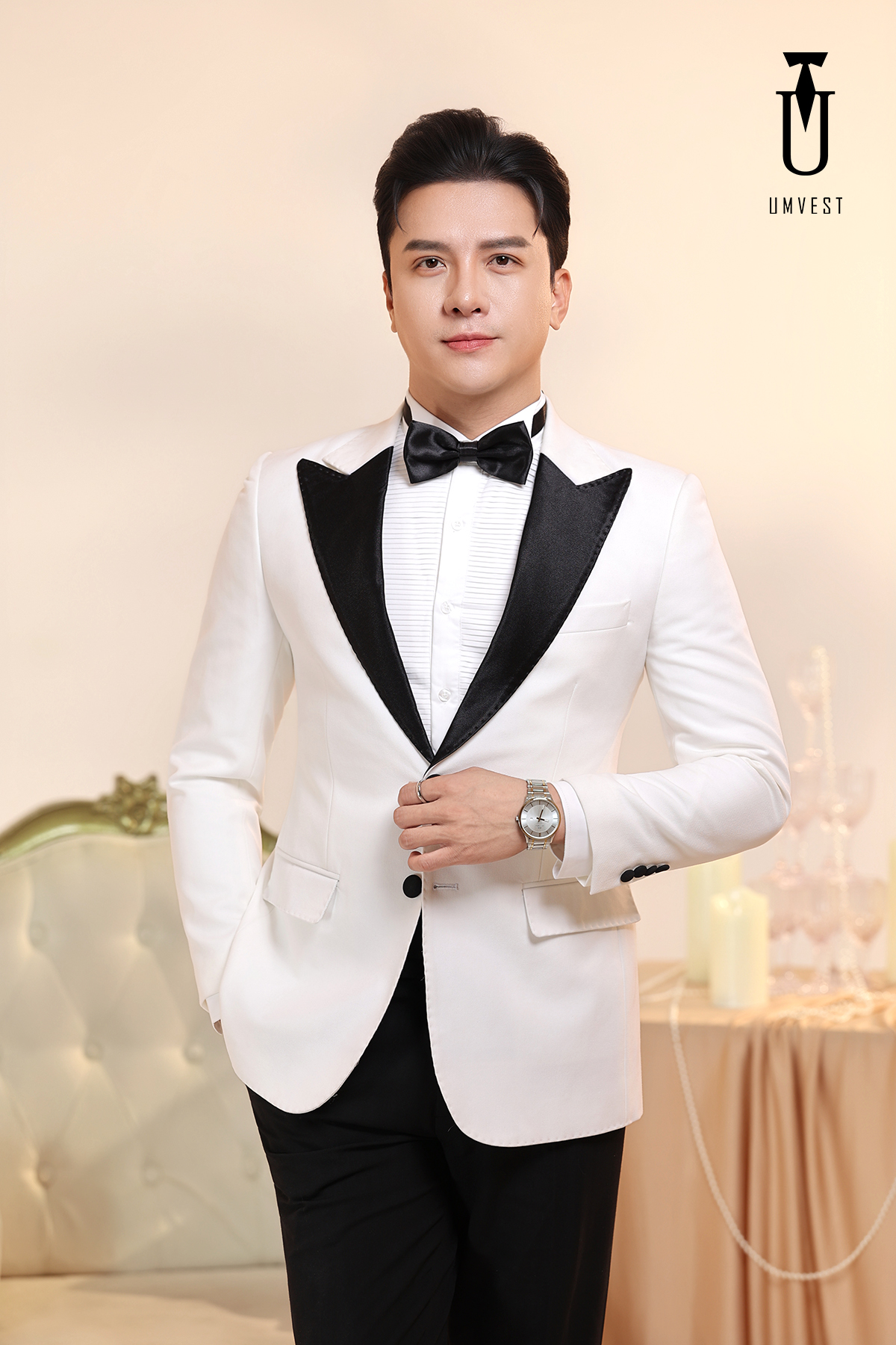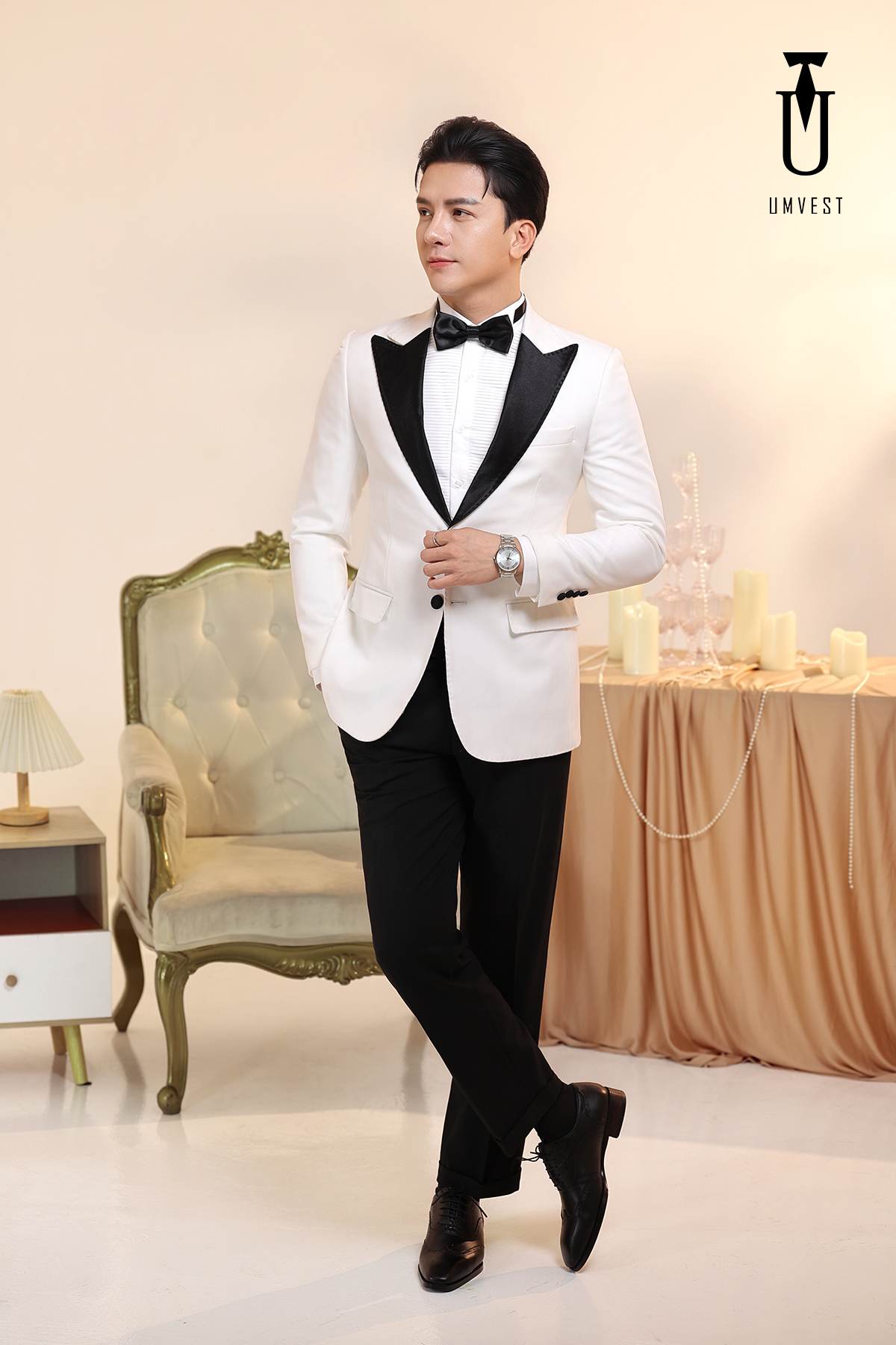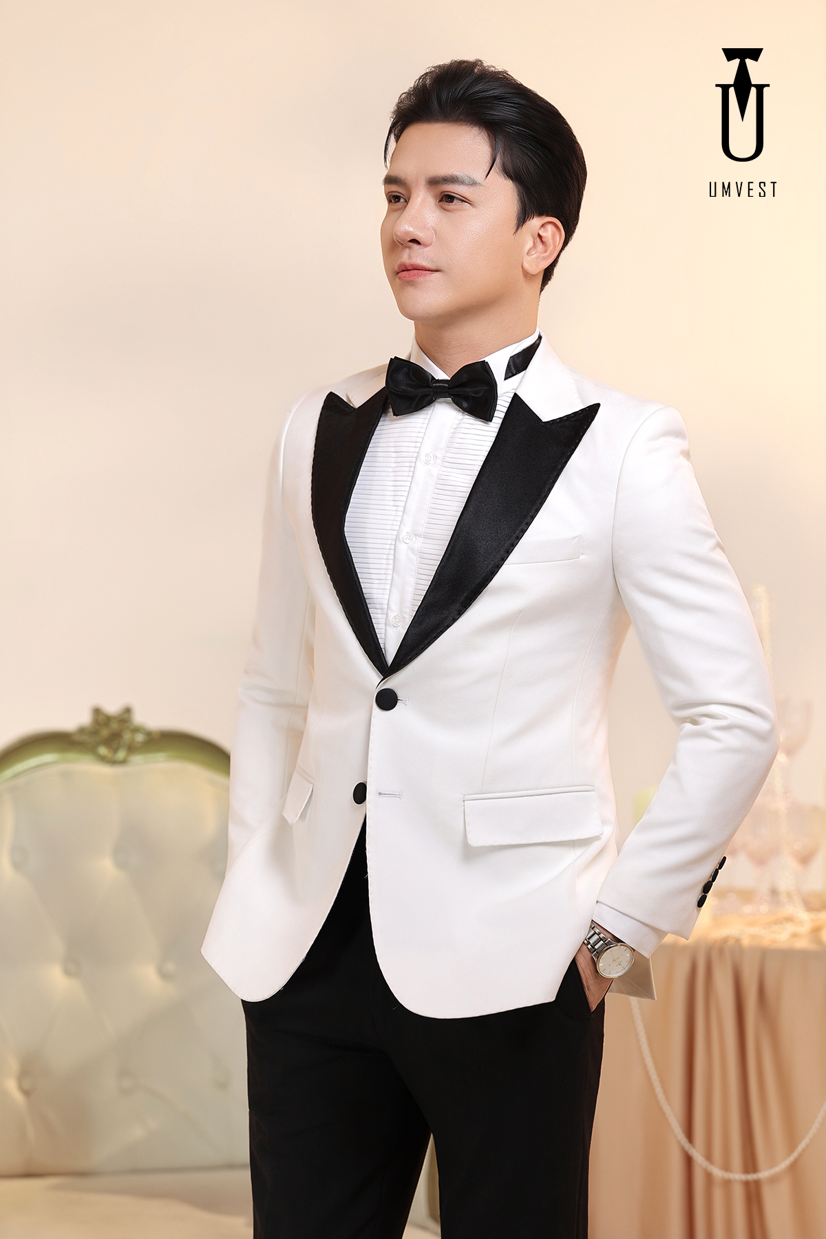 Thuê Tuxedo Trắng Ve Nhọn Đen