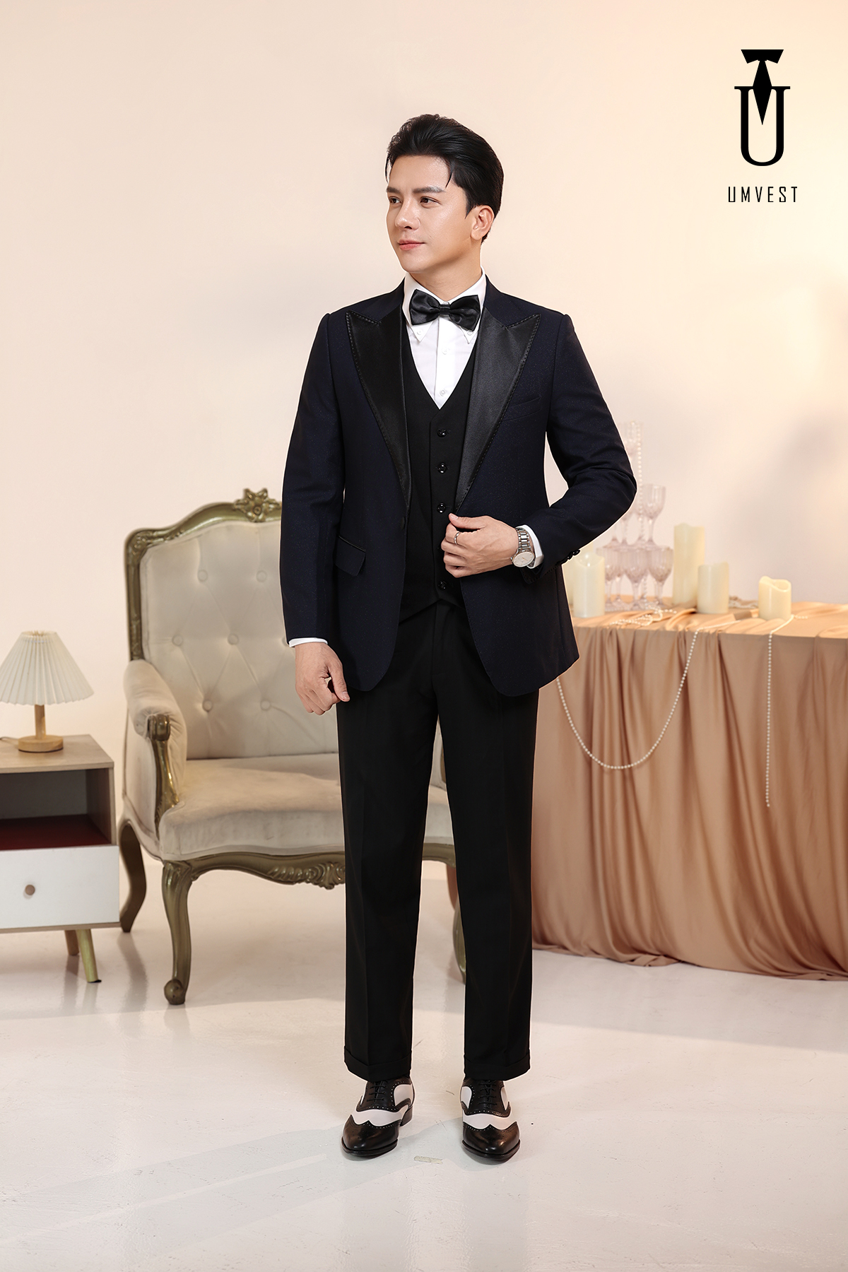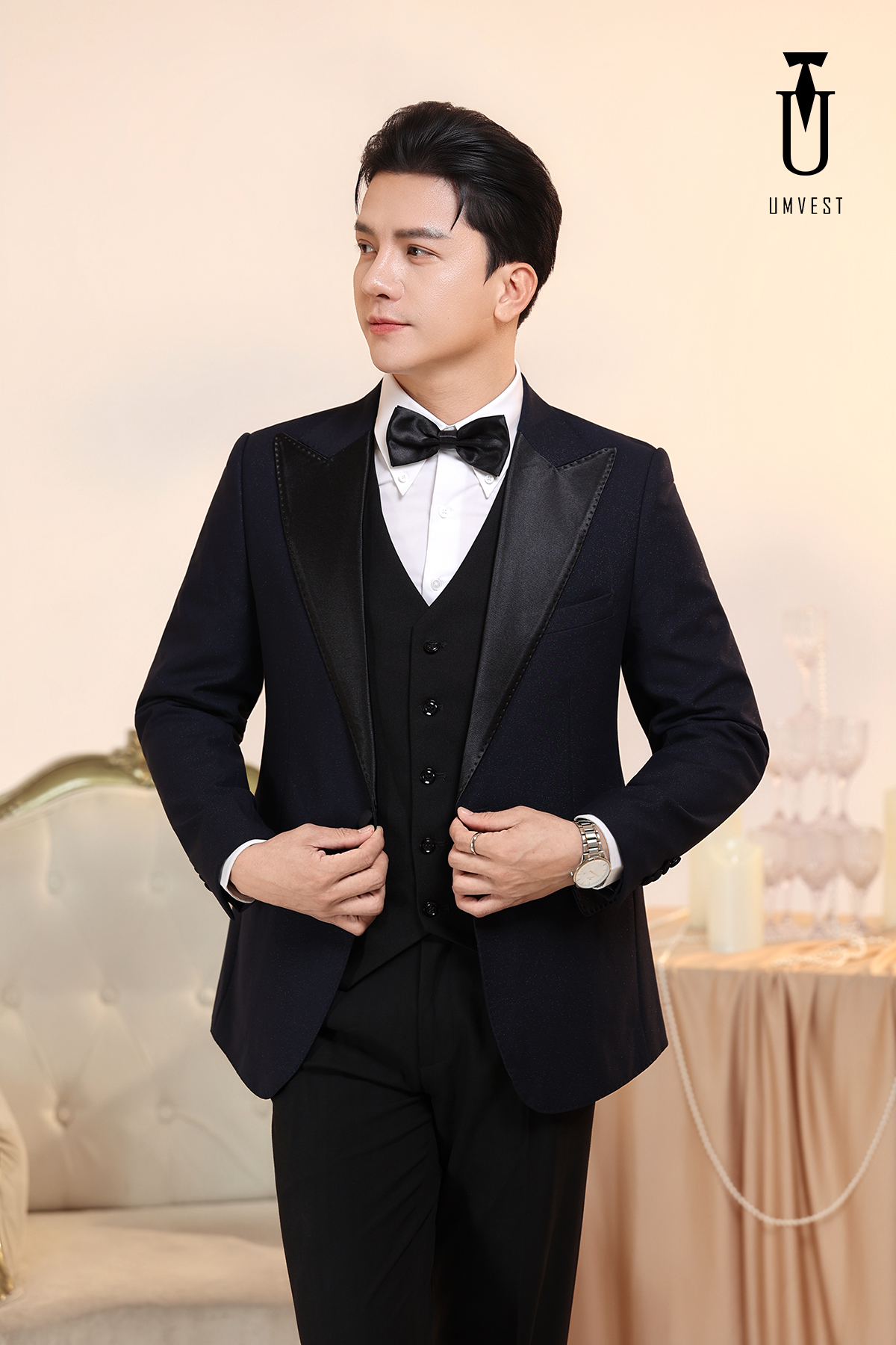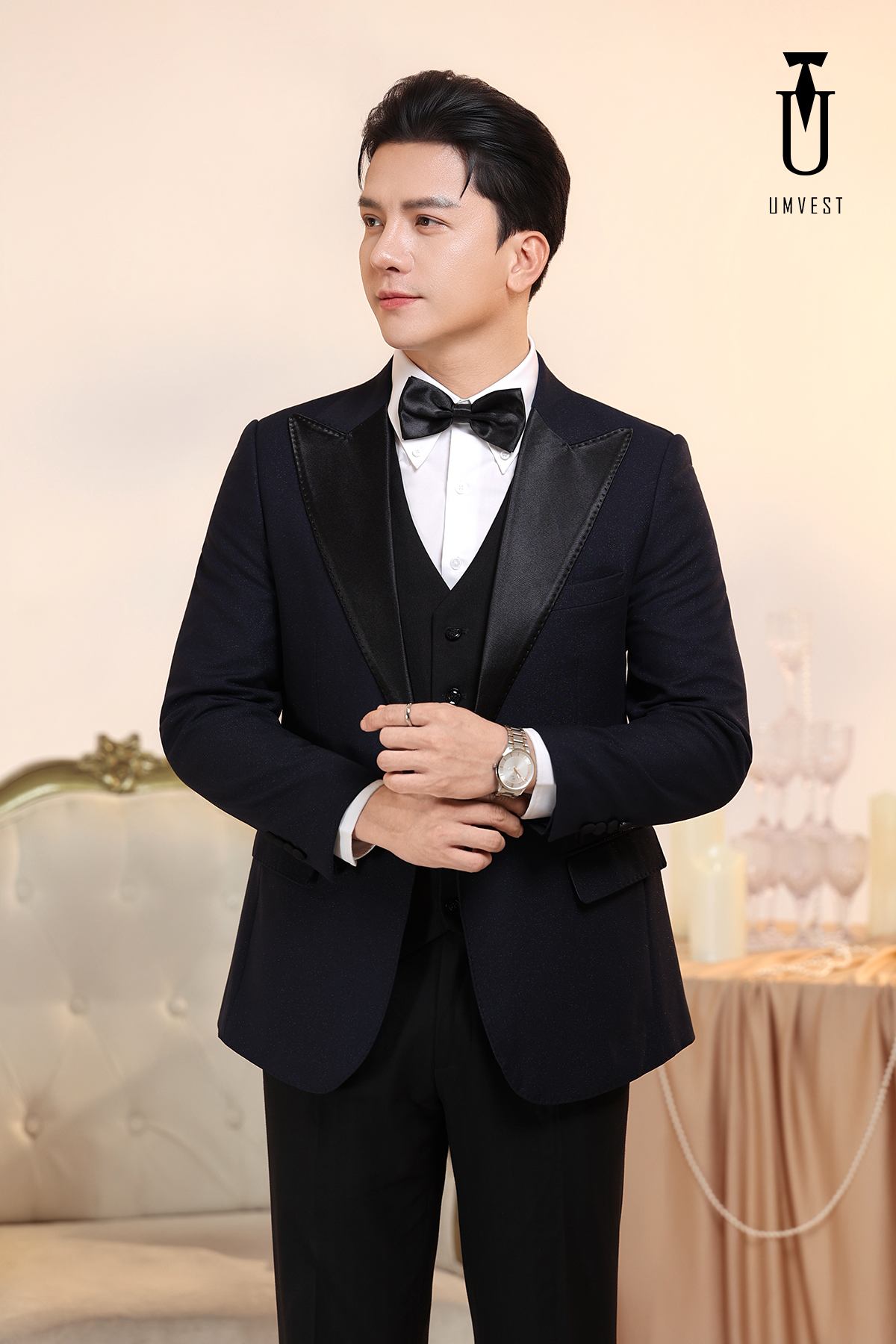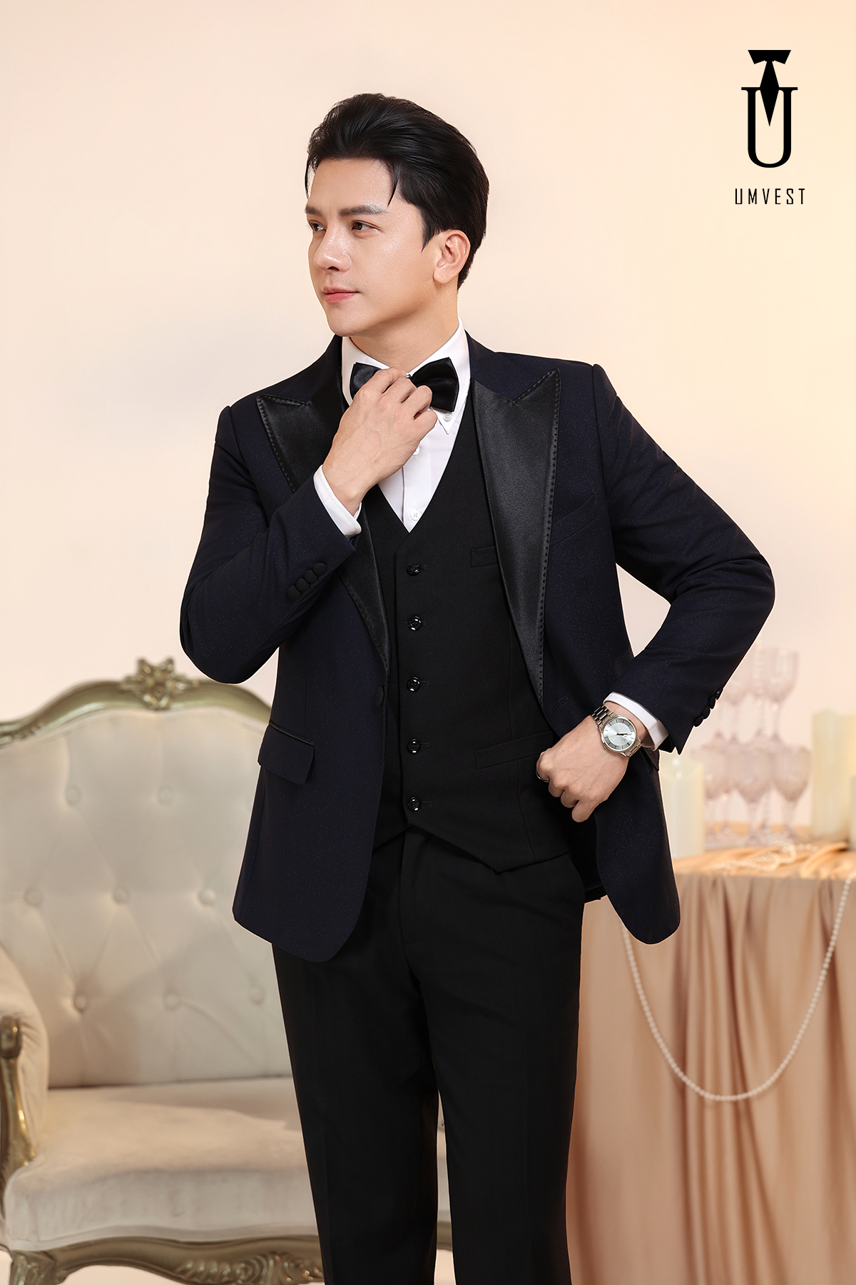 Thuê Tuxedo Xanh Nhu Phối Quần Gile Đen