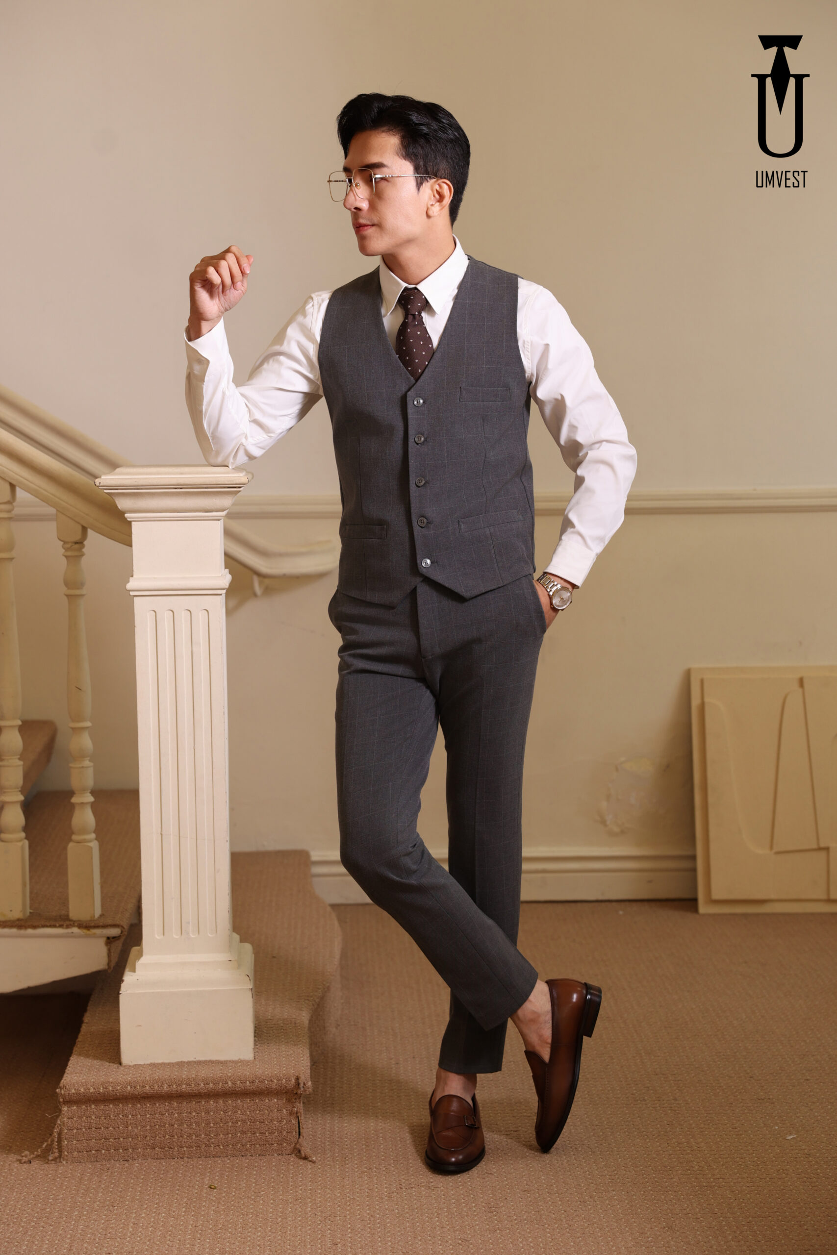 BỘ VEST CARO XÁM GIÃN 826