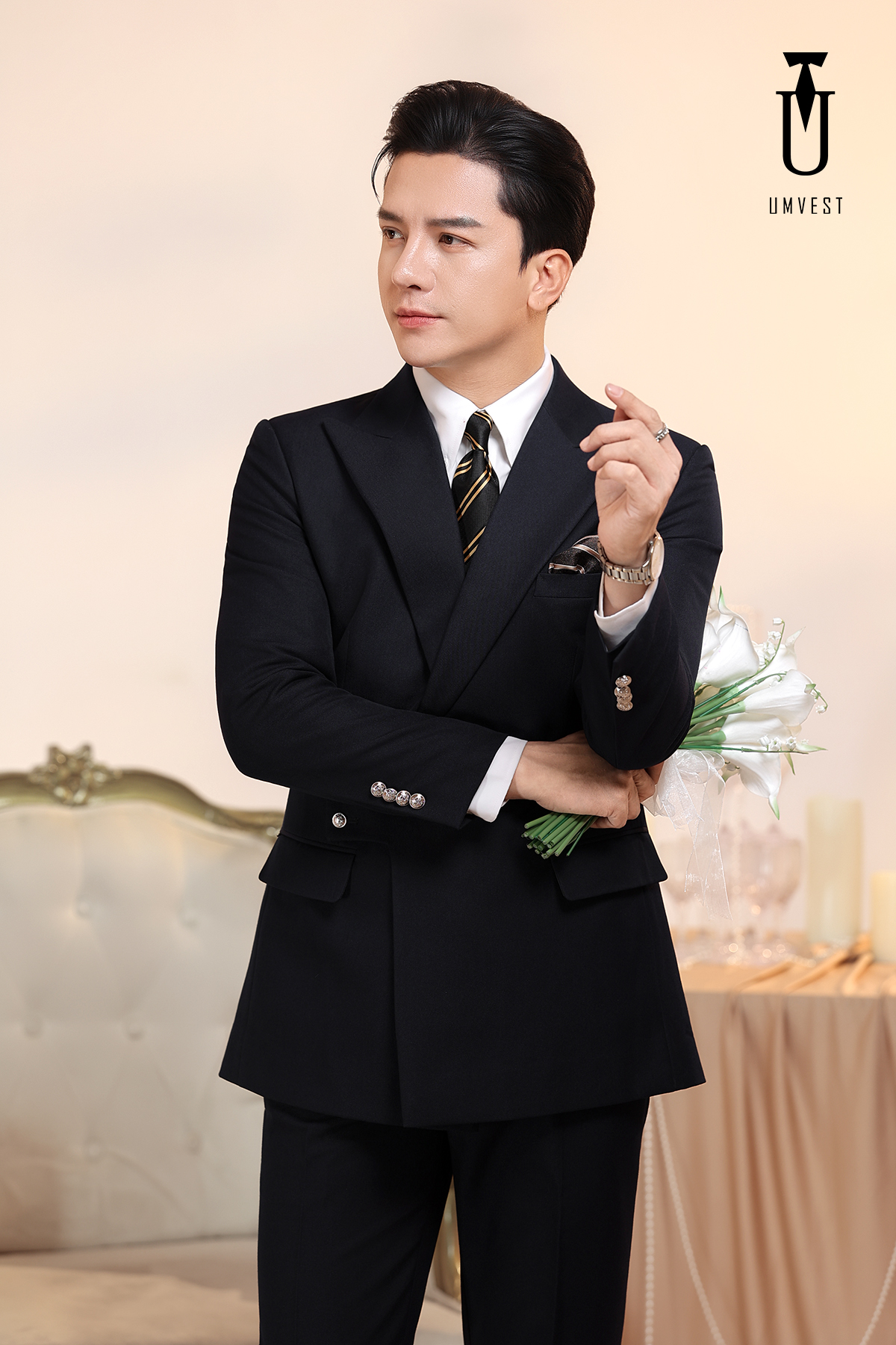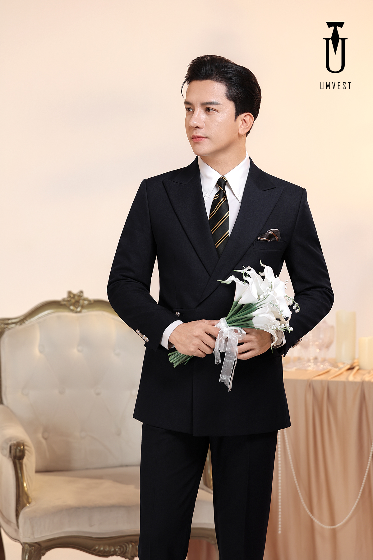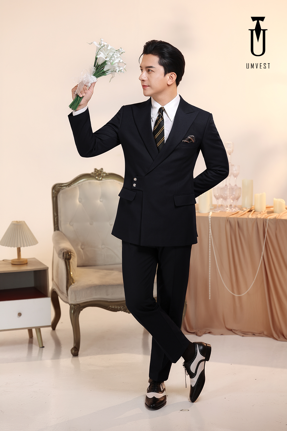 Vest Chú Rể Đen Cài Chéo