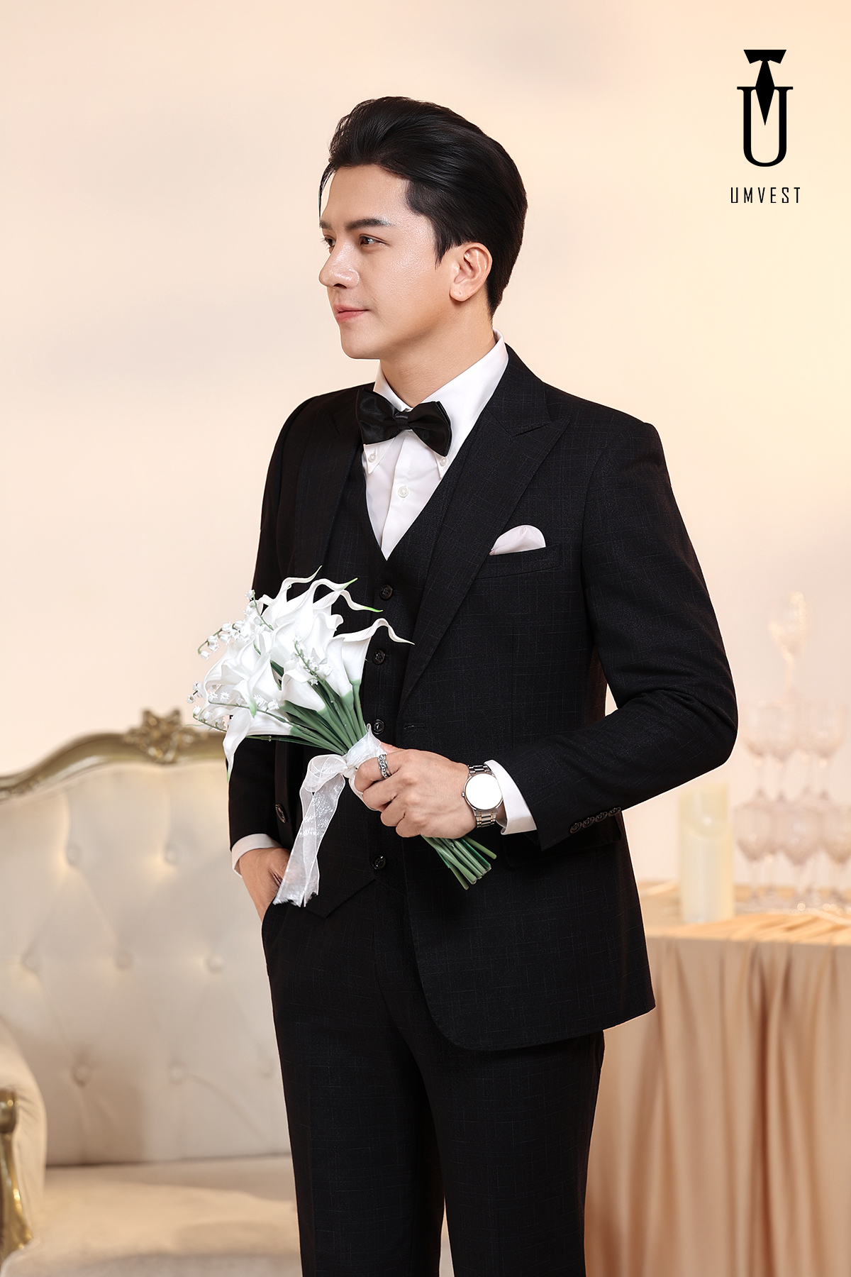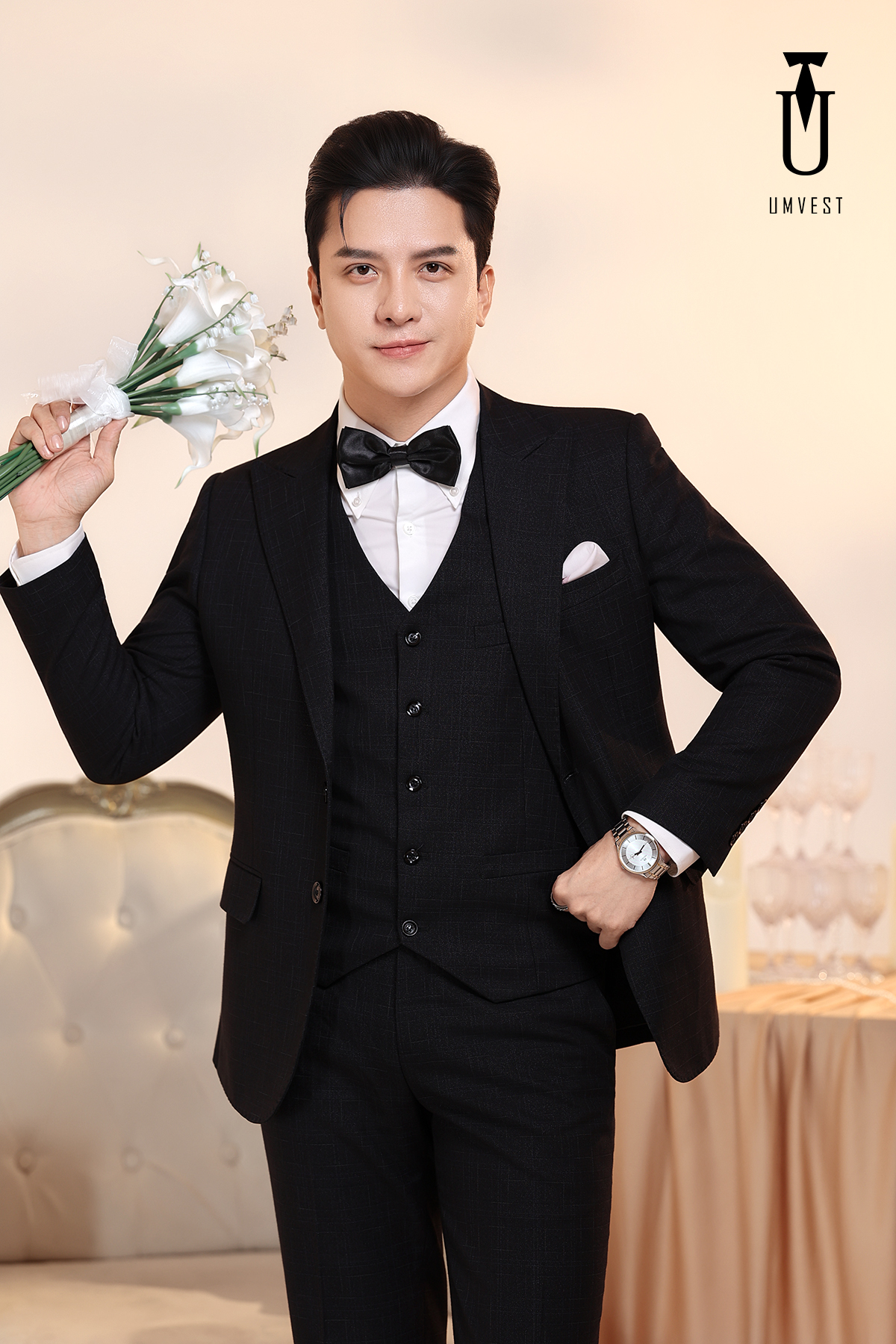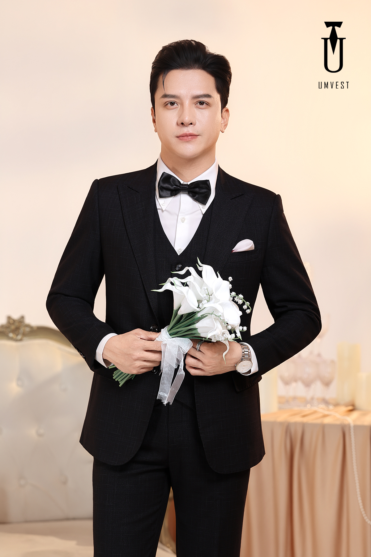 Vest Chú Rể Đen Gile Phối Nơ 95