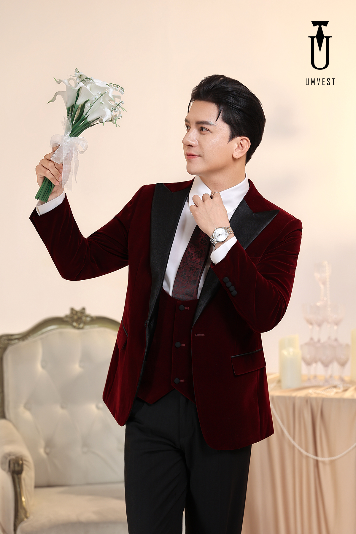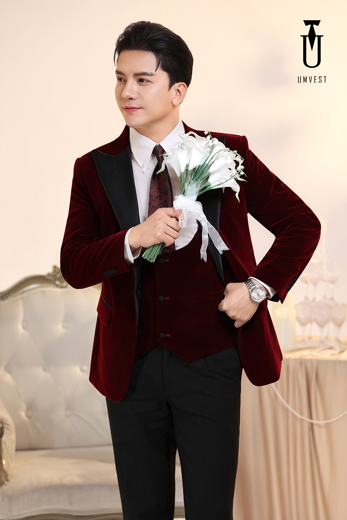 Vest Chú Rể Đỏ Nhung