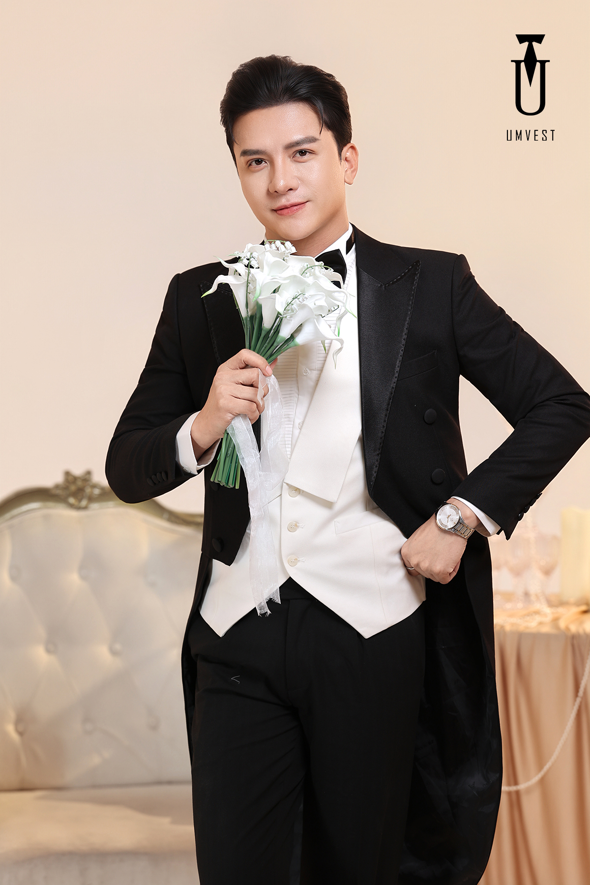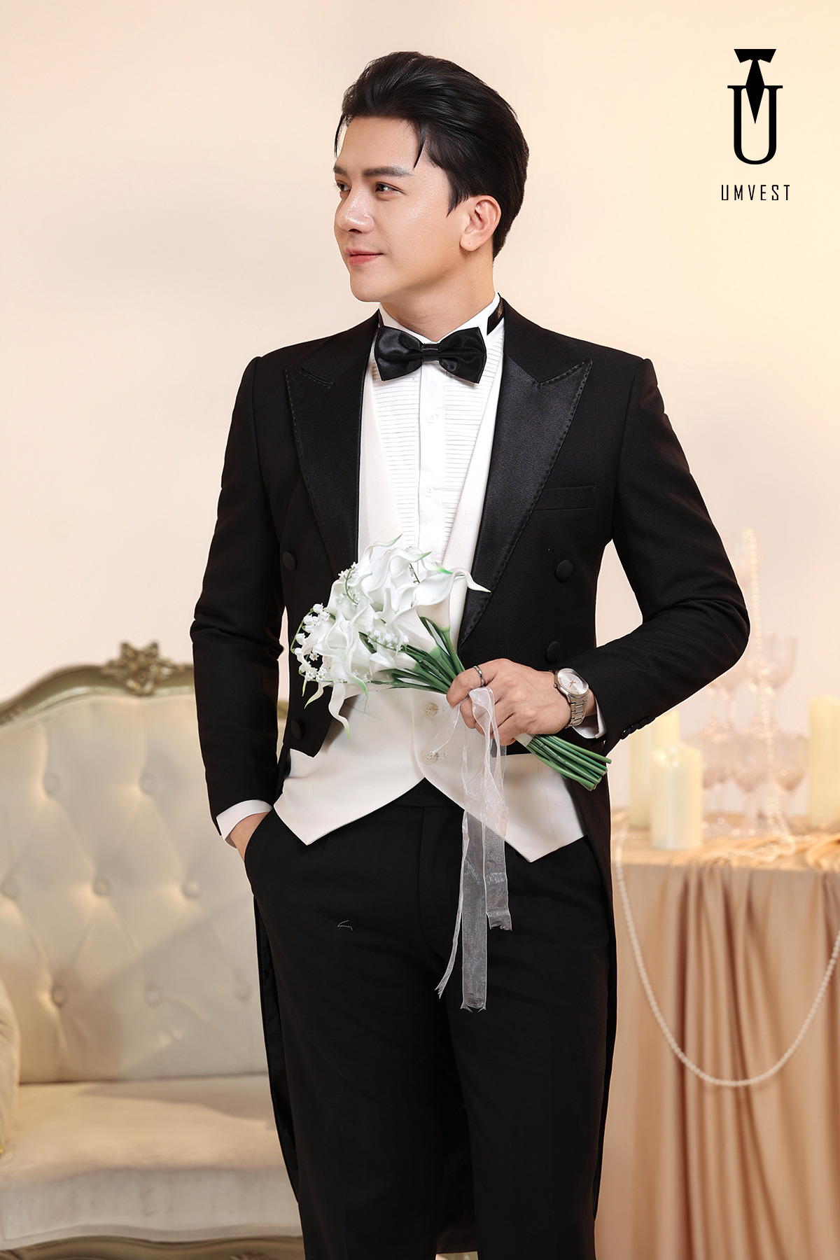 window.dataLayer = window.dataLayer || []; function gtag(){dataLayer.push(arguments);} gtag('js', new Date()); gtag('config', 'G-KD0V9MZ16E'); Vest Chú Rể Đuôi Tôm Đen Gile Trắng - UMvest - Cung cấp Vest Nam - Vest Cưới - Vest Công Sở - Vest Trung Niên Giá Rẻ Tại Hà Nội
