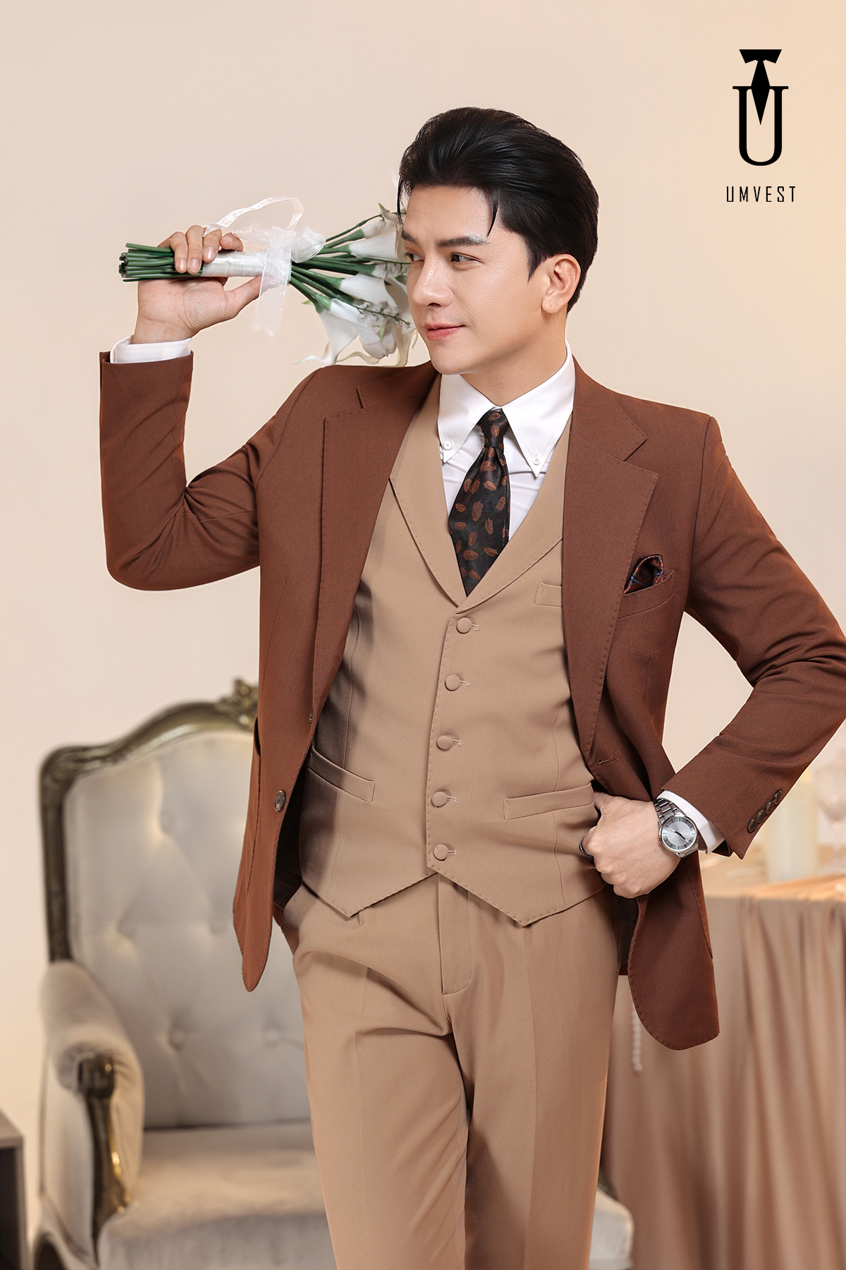 Vest Chú Rể Nâu Đậm Nhạt