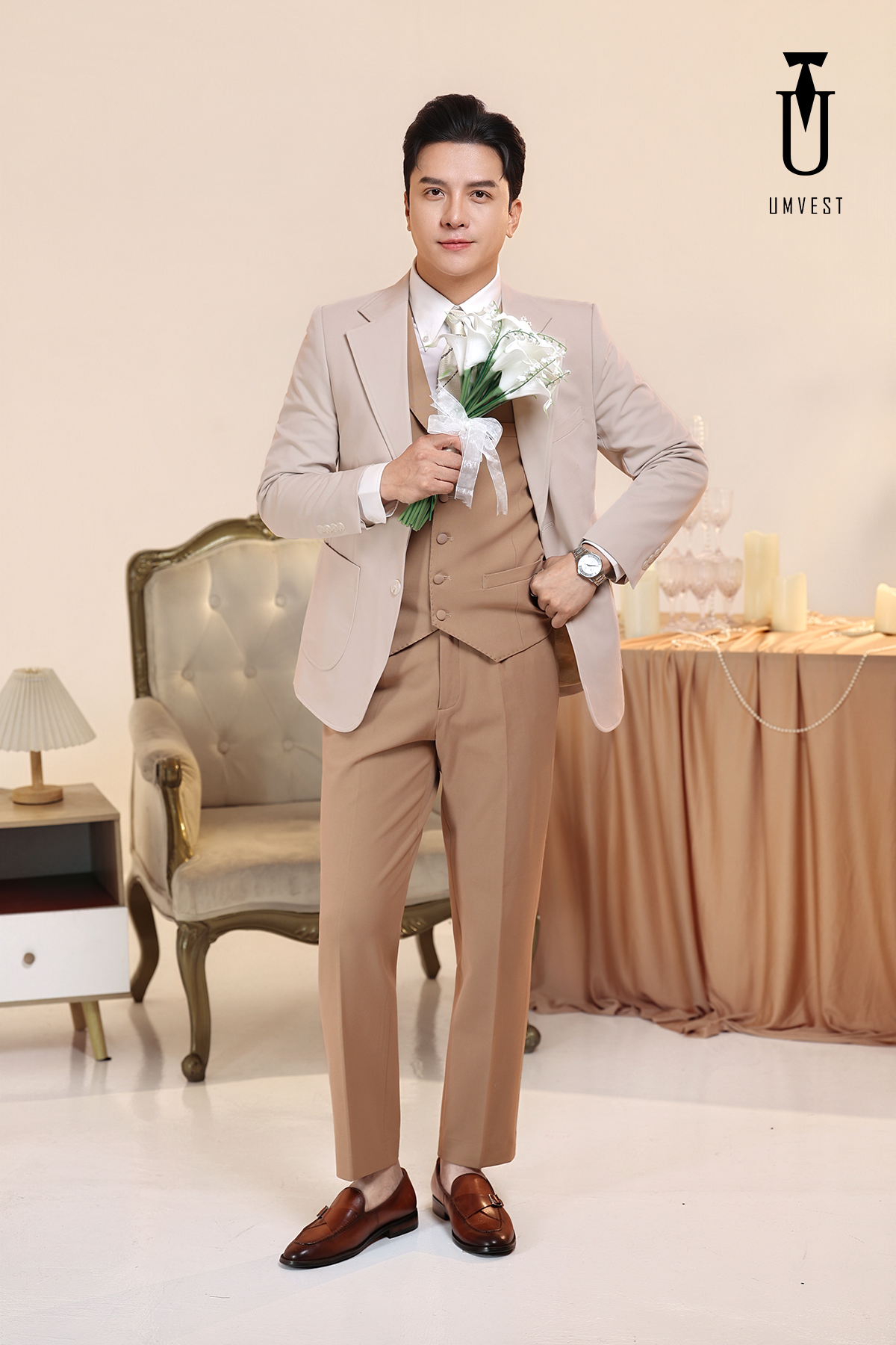 window.dataLayer = window.dataLayer || []; function gtag(){dataLayer.push(arguments);} gtag('js', new Date()); gtag('config', 'G-KD0V9MZ16E'); Vest Chú Rể Nâu Nhạt Phối Kem - UMvest - Cung cấp Vest Nam - Vest Cưới - Vest Công Sở - Vest Trung Niên Giá Rẻ Tại Hà Nội