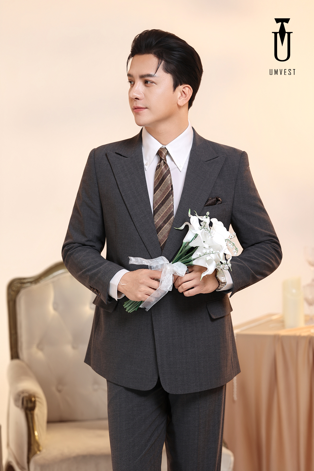 Vest Chú Rể Xám Đậm Xương Cá Khóa