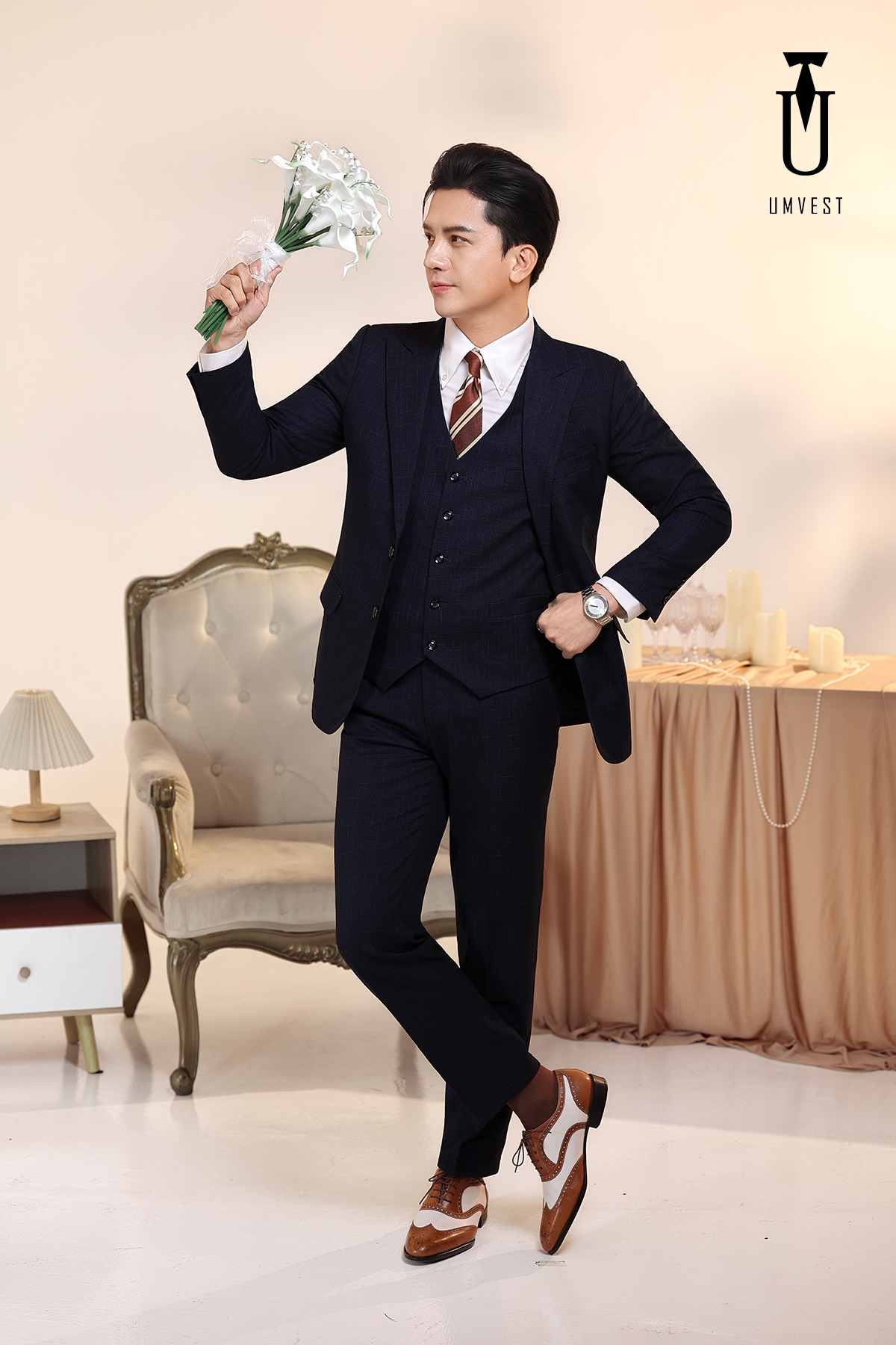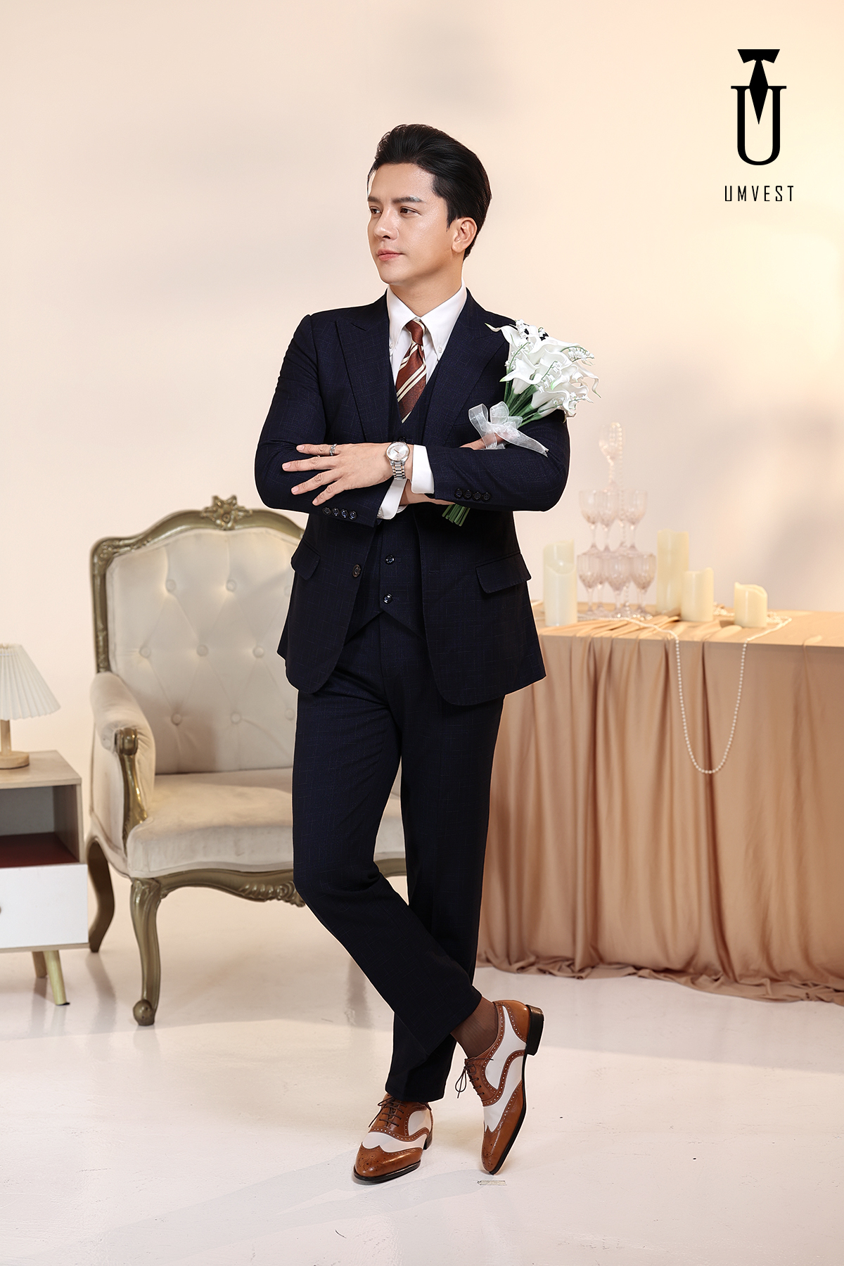 Vest Chú Rể Xanh Đen Gile 93