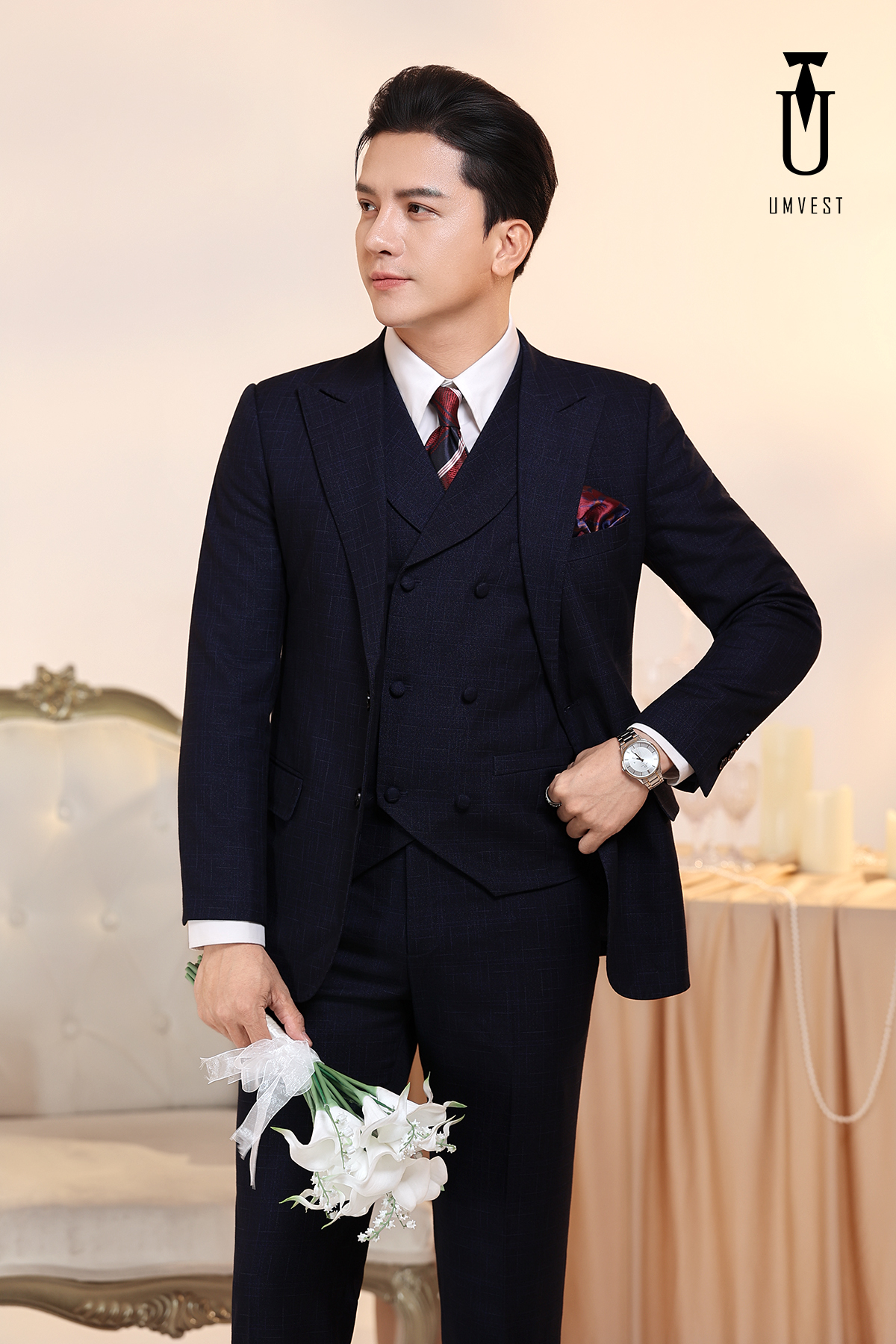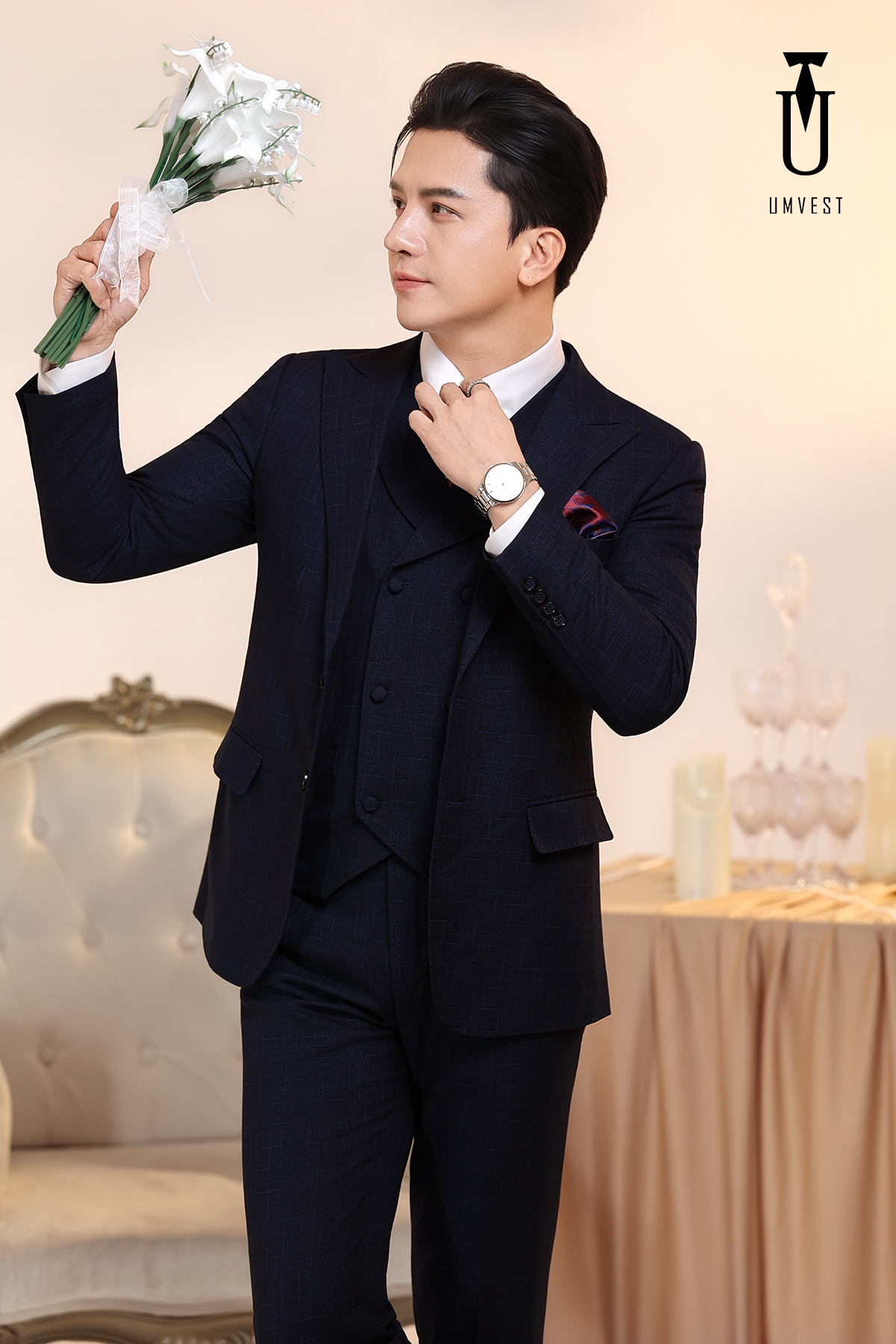 window.dataLayer = window.dataLayer || []; function gtag(){dataLayer.push(arguments);} gtag('js', new Date()); gtag('config', 'G-KD0V9MZ16E'); Vest Chú Rể Xanh Đen Gile Sam - UMvest - Cung cấp Vest Nam - Vest Cưới - Vest Công Sở - Vest Trung Niên Giá Rẻ Tại Hà Nội