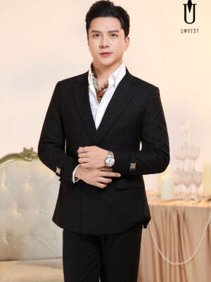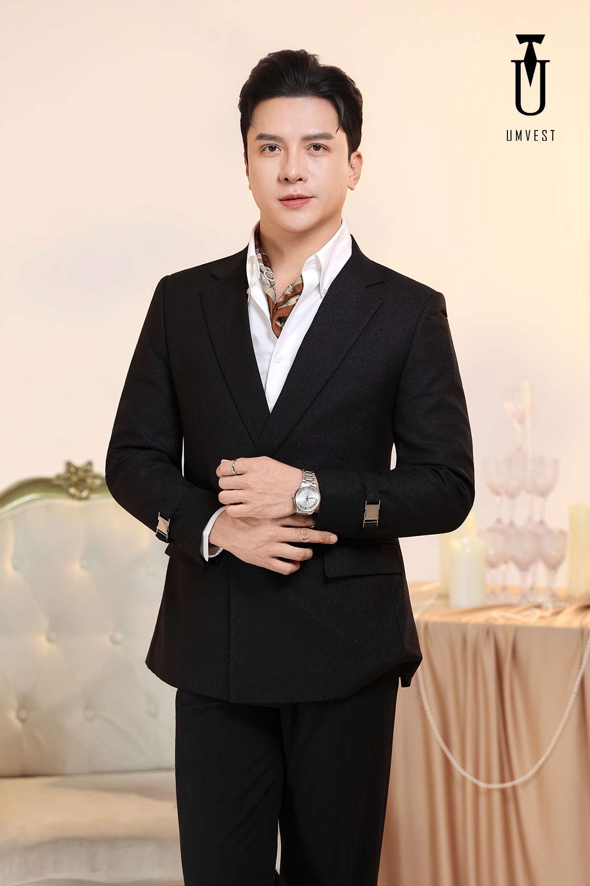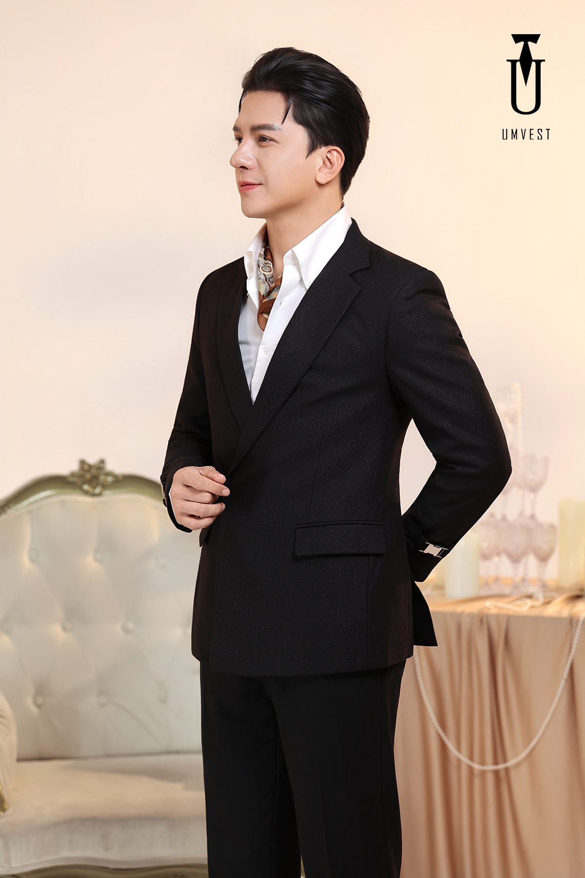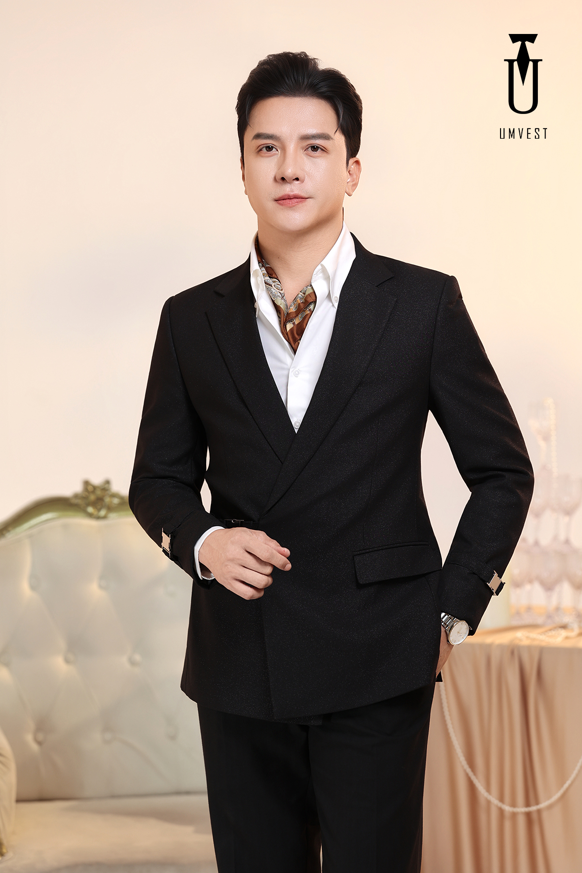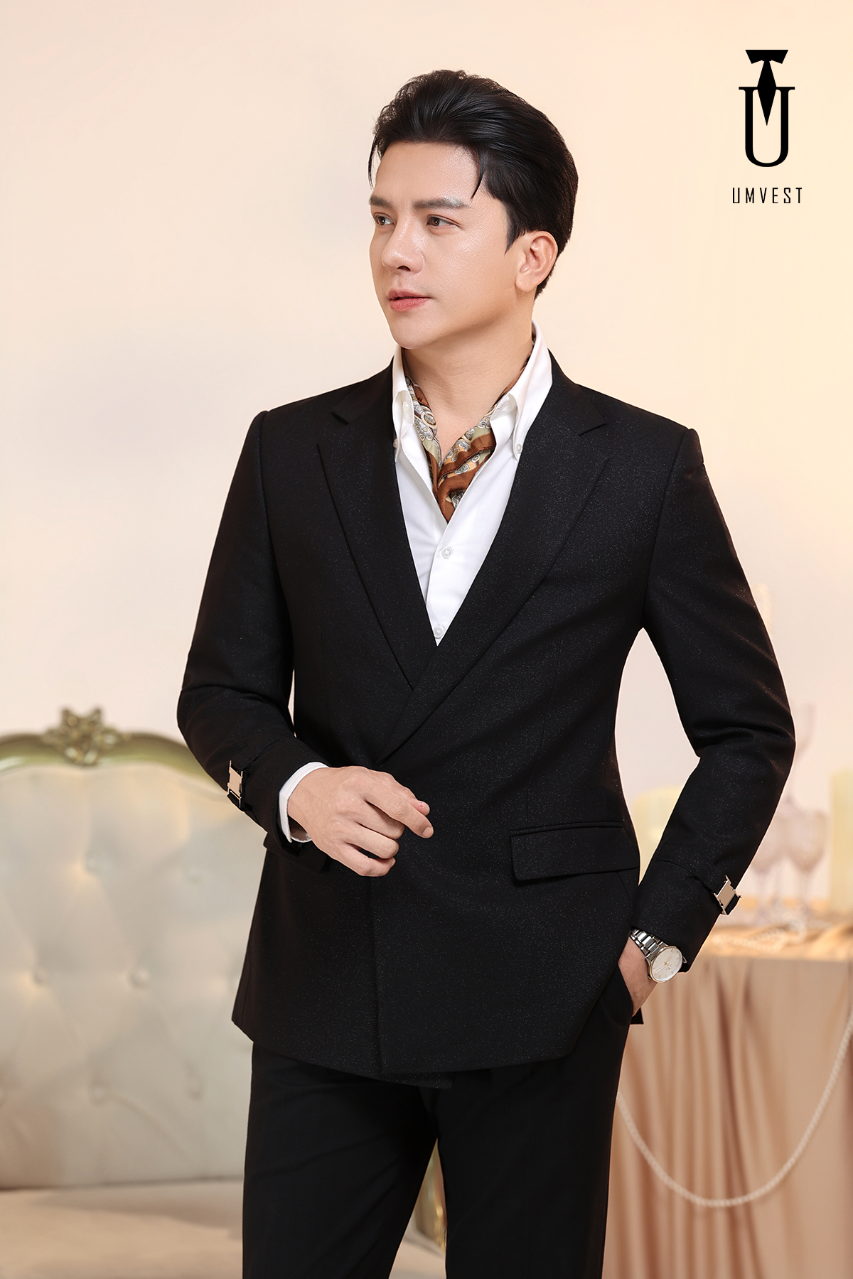 Vest Nam Đen Nhũ Khóa Khăn Cổ