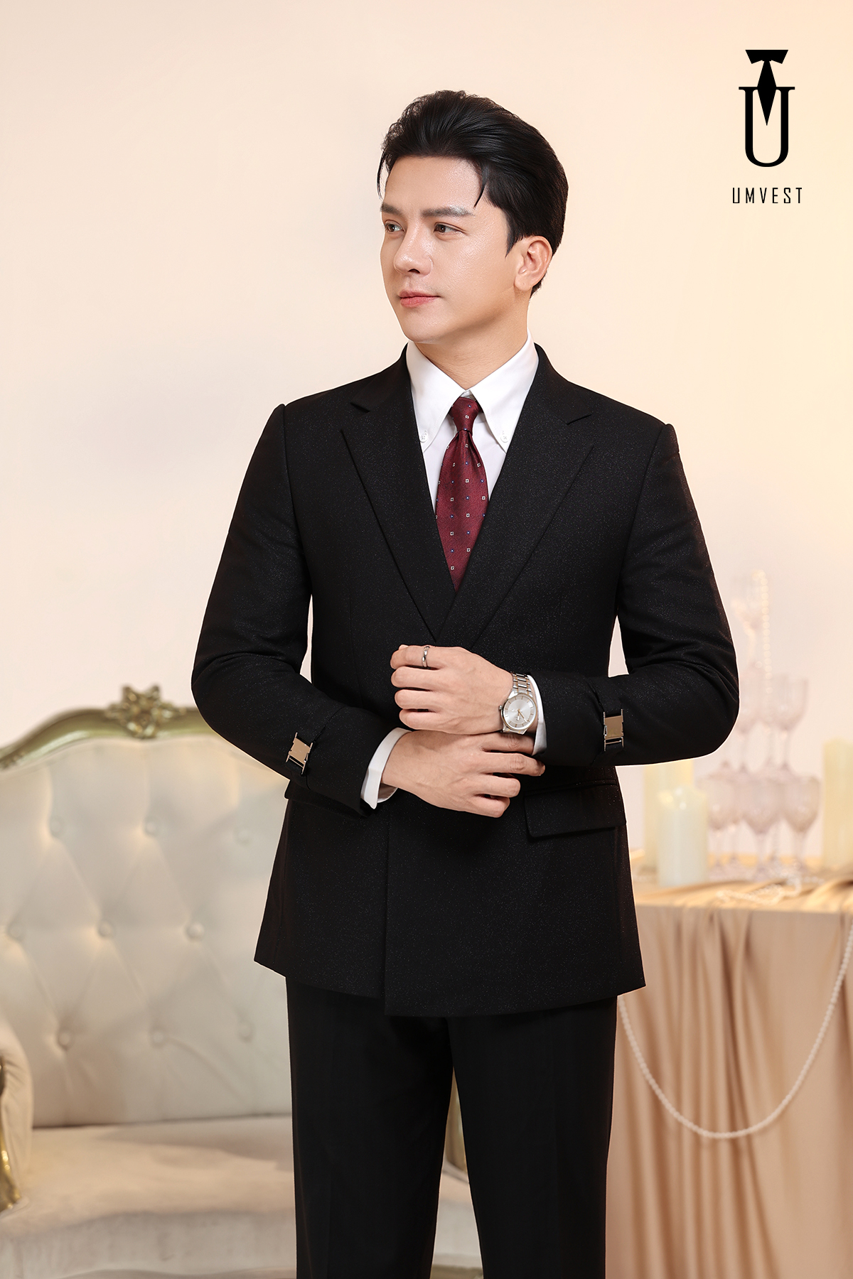 Vest Nam Đen Xương Cá Khóa Sập