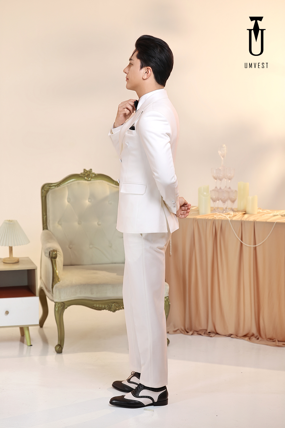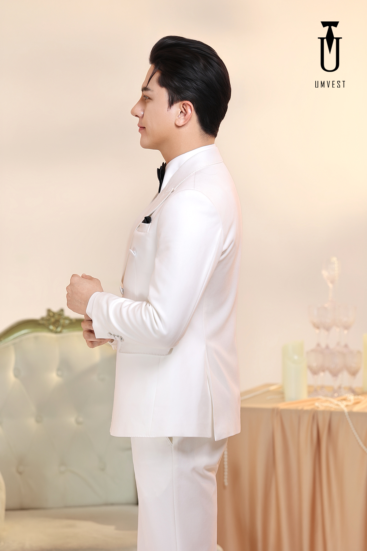 Vest Nam Trắng 6 Cúc