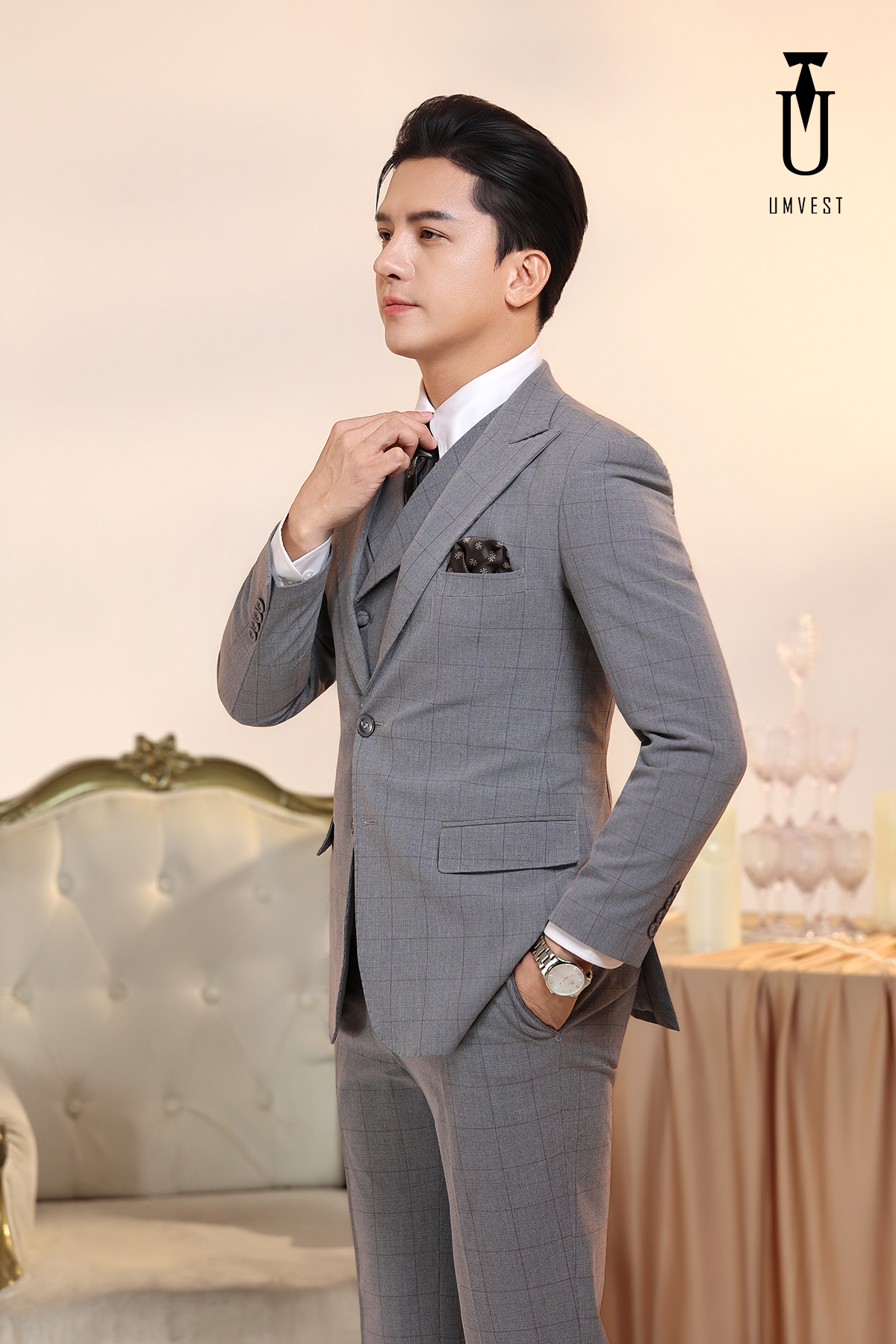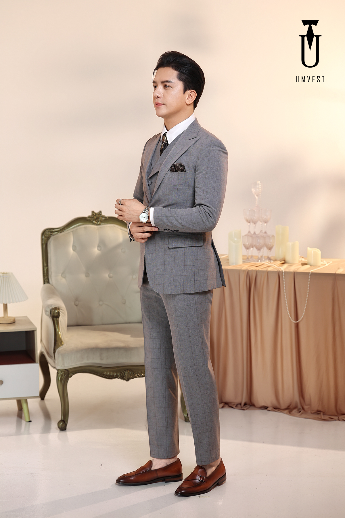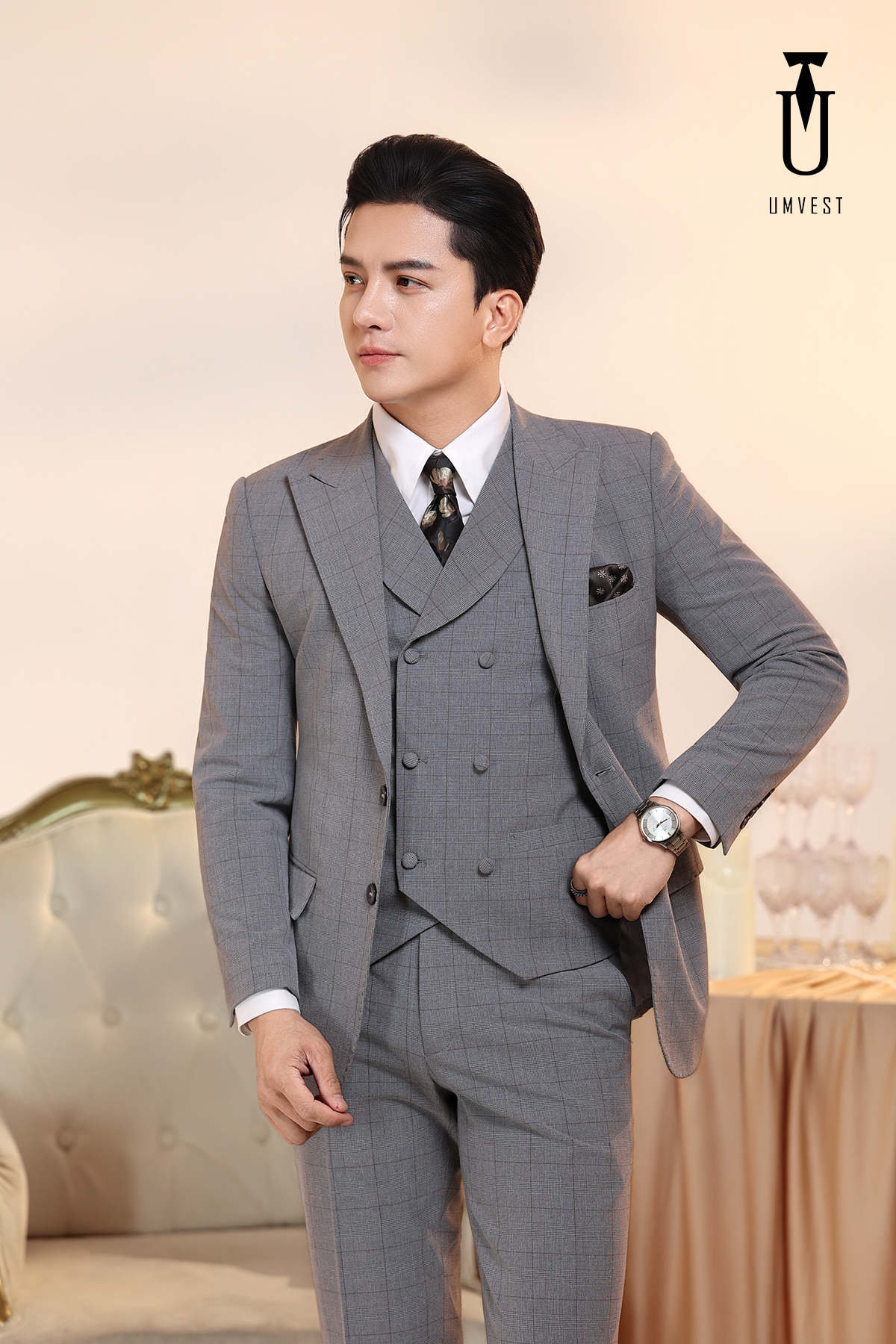 Vest Nam Xám Nhạt Kẻ Gile Sam