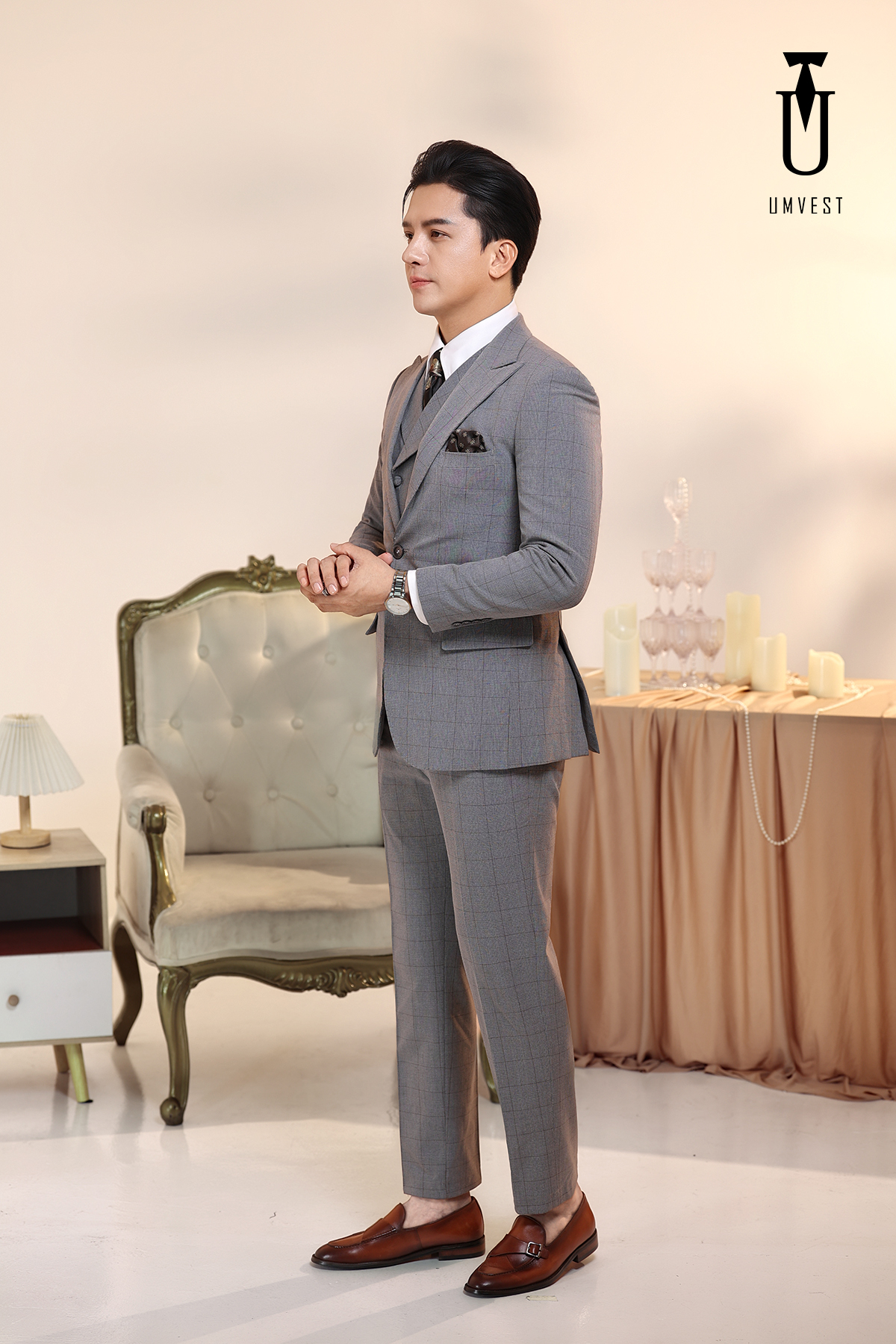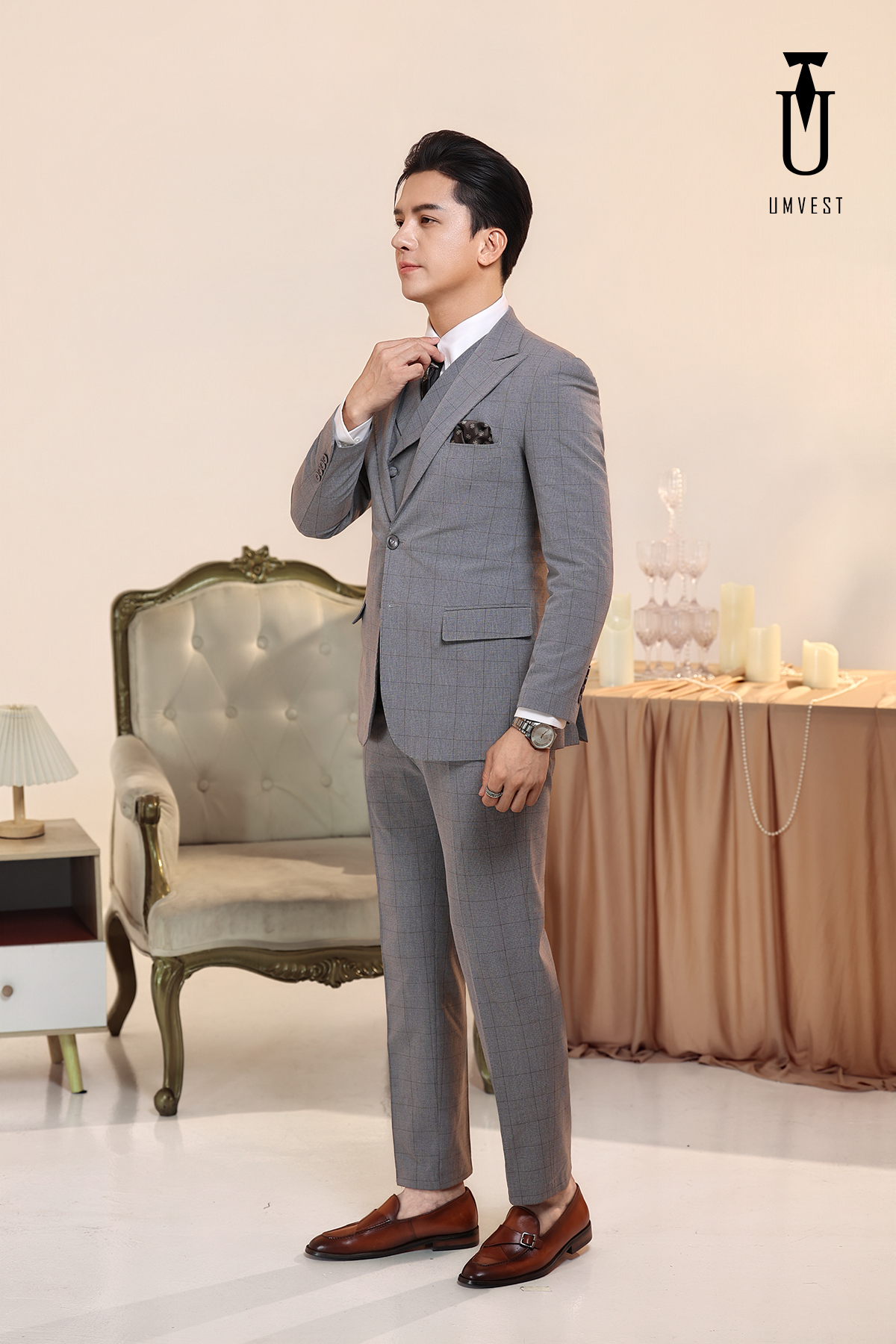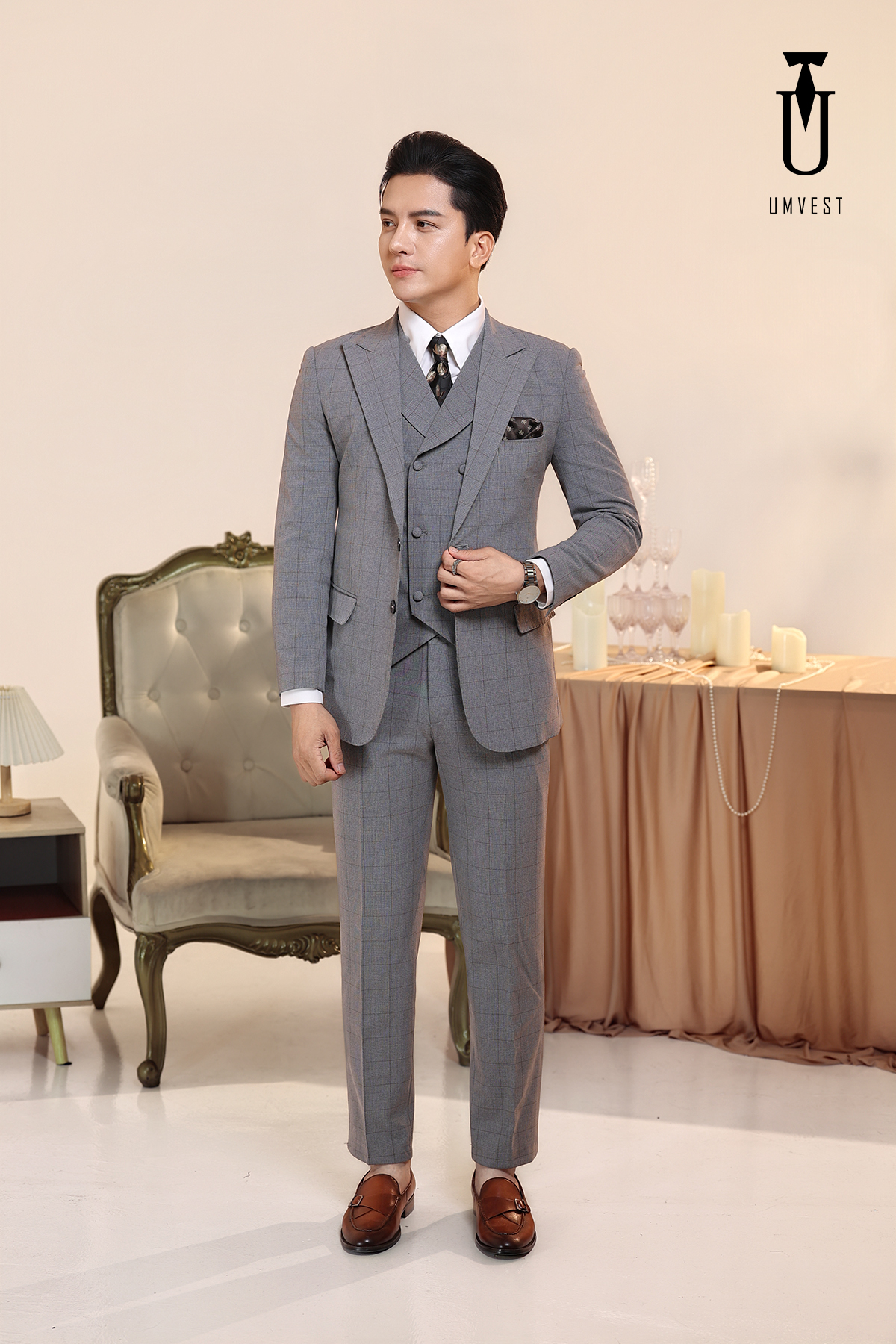 Vest Nam Xám Nhạt Kẻ Gile Sam