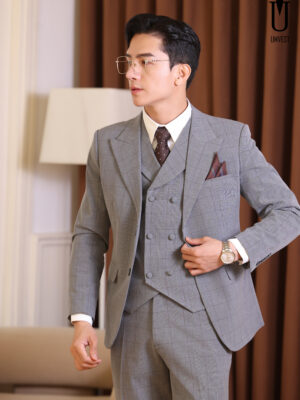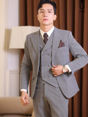 BỘ VEST XÁM KẺ SÁNG 80